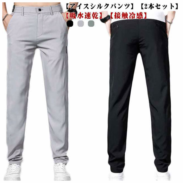 2本セット アイスシルクパンツ メンズ ゴルフ 接触冷感 パンツ 吸水速乾 ストレッチパンツ 大きいサイズ 夏 ストレッチ 涼しい ゴルフパンツ 冷感パンツ チノパン 涼感 ズボン ロングパンツ スポーツパンツ 軽量 ゴルフウェア スポーツウェア ゴルフパンツ