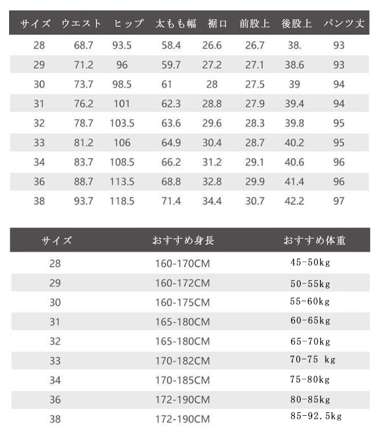| サイズ | 28 29 30 31 32 33 34 36 38 |