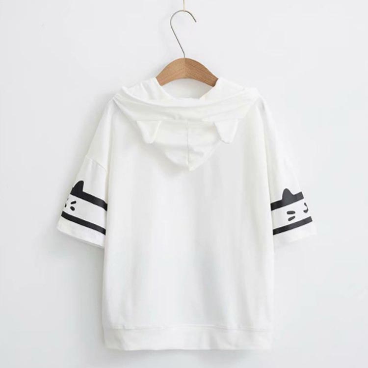 可愛い猫耳付き!これからの季節に毎日着ても飽きのこない半袖パーカーが登場!肌触りが柔らかいポリエステル素材を使用しており、通気性が良くて快適な着心地が実現します。どんなアイテムとも合わせやすいのが嬉しい。パンツはワイドでもタイトでもオシャレに着こなせます。