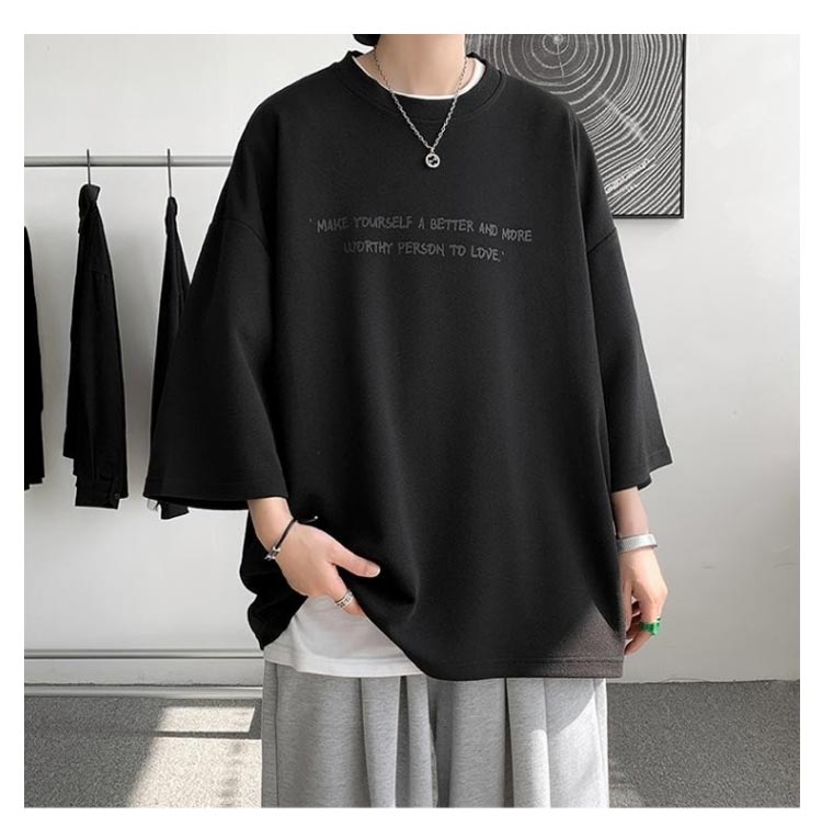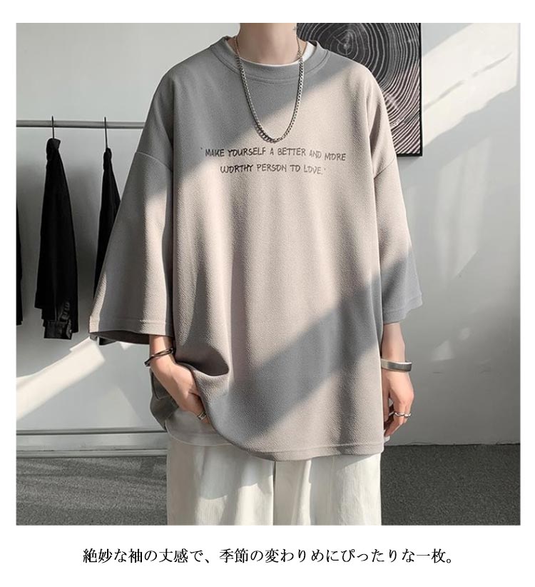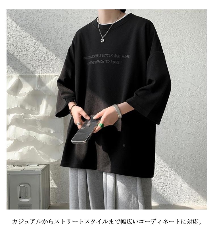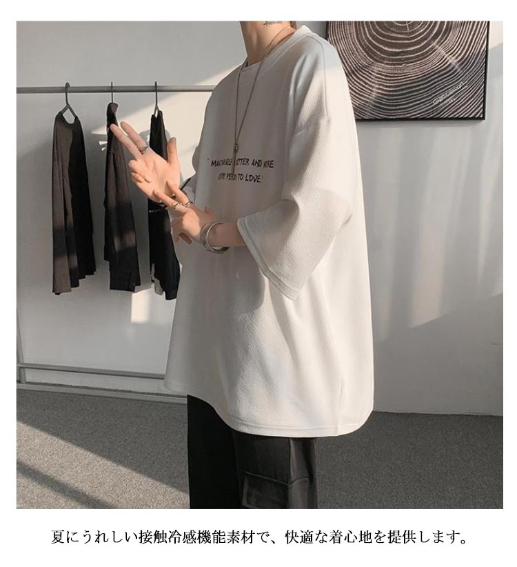M-5XL!接触冷感機能付きのビッグシルエットの七分袖tシャツです。夏にうれしい接触冷感機能素材で、快適な着心地を提供します。オーバーサイズでリラックス感のある着こなしが可能です。絶妙な袖の丈感で、季節の変わりめにぴったりな一枚。カジュアルからストリートスタイルまで幅広いコーディネートに対応。