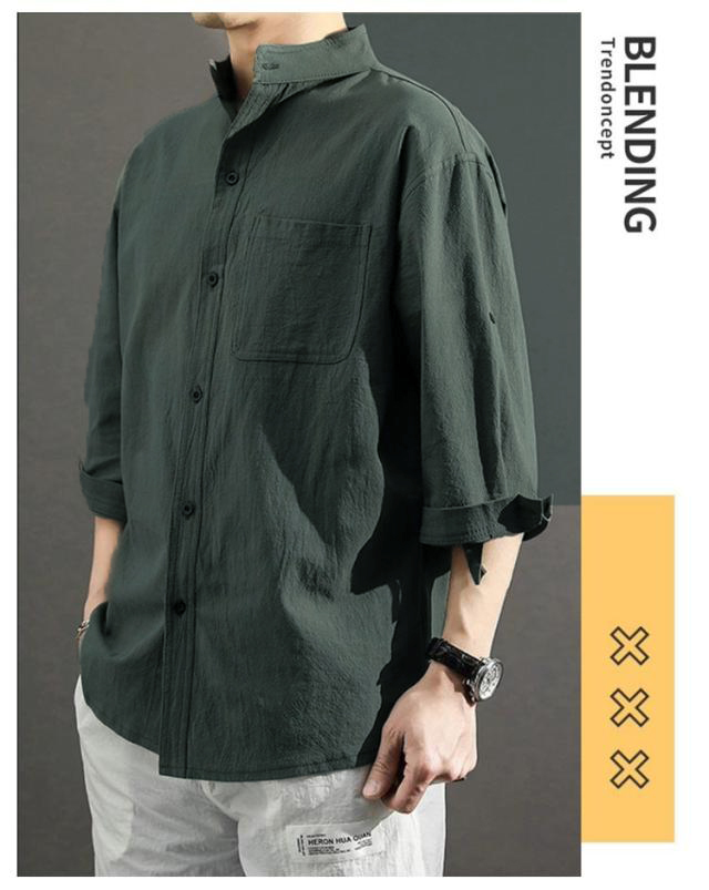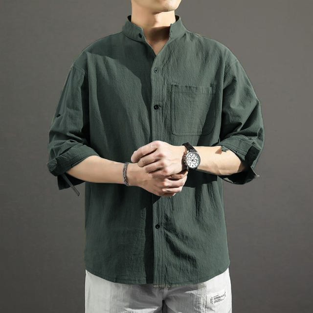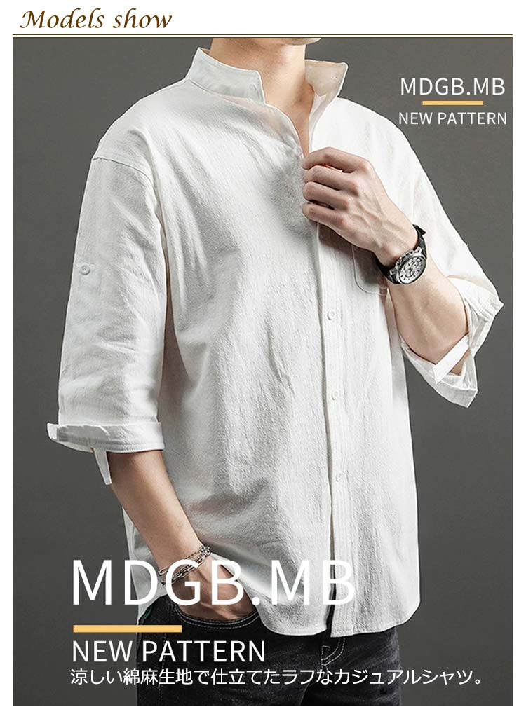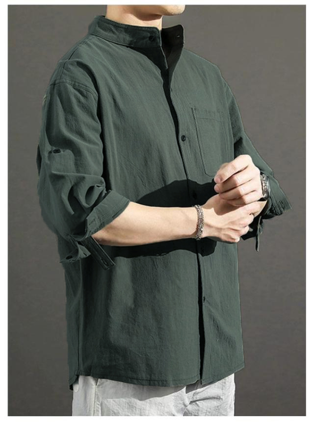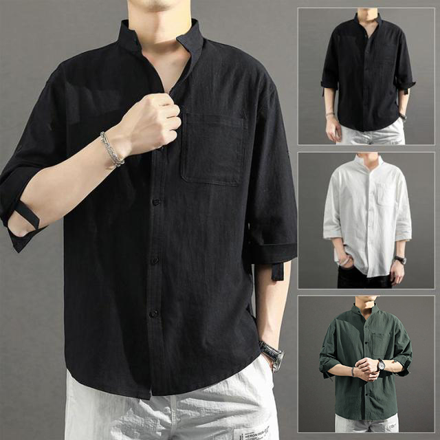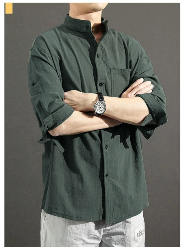 送料無料 リネンシャツ メンズ シャツ 半袖 七分袖 綿麻シャツ カジュアルシャツ 大きいサイズ リネン混 綿麻 コットンリネン 春服 夏服 7分袖 スタンドカラー 無地 涼しい 前開き トップス 春 夏 ゆったり 通気性 シンプル カジュアル ギフト プレゼント