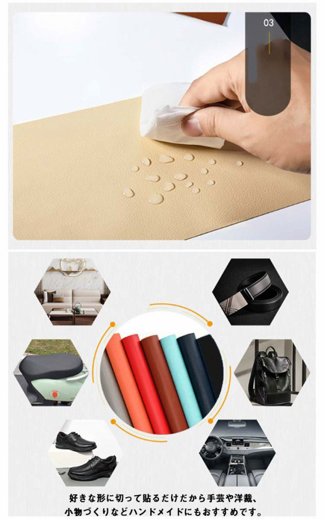 | 合皮シート、10枚入りです。 ソファや椅子などの家具やインテリアの皮製品、自動車やバイクのシートや内装、バックの底あて、財布やキーケース、ベルトなどの小物まで、幅広い革製品の修復にご利用いただけます。 好きな形に切って貼るだけだから手芸や洋裁、小物づくりなどハンドメイドにもおすすめです。 粘着シールでしっかり貼り付けできます。 PUレザーで高級感バッチリです。 | |
