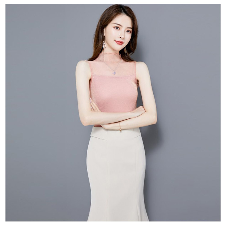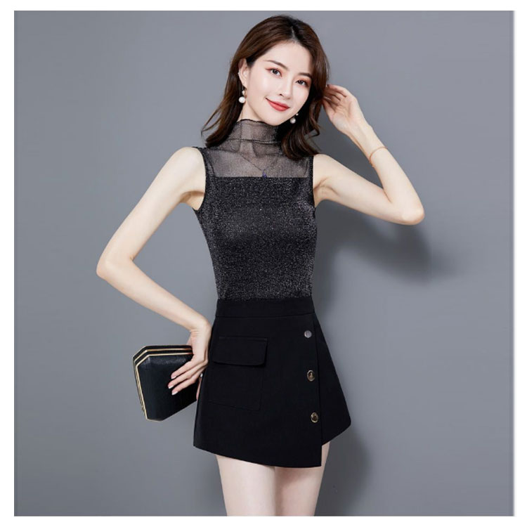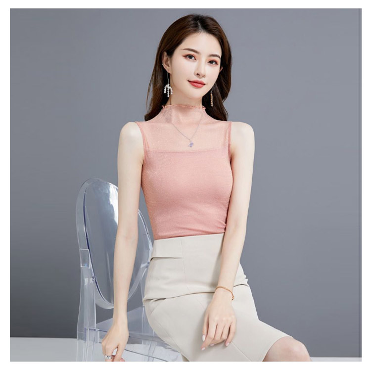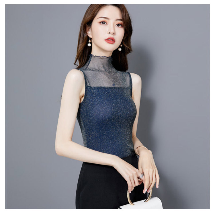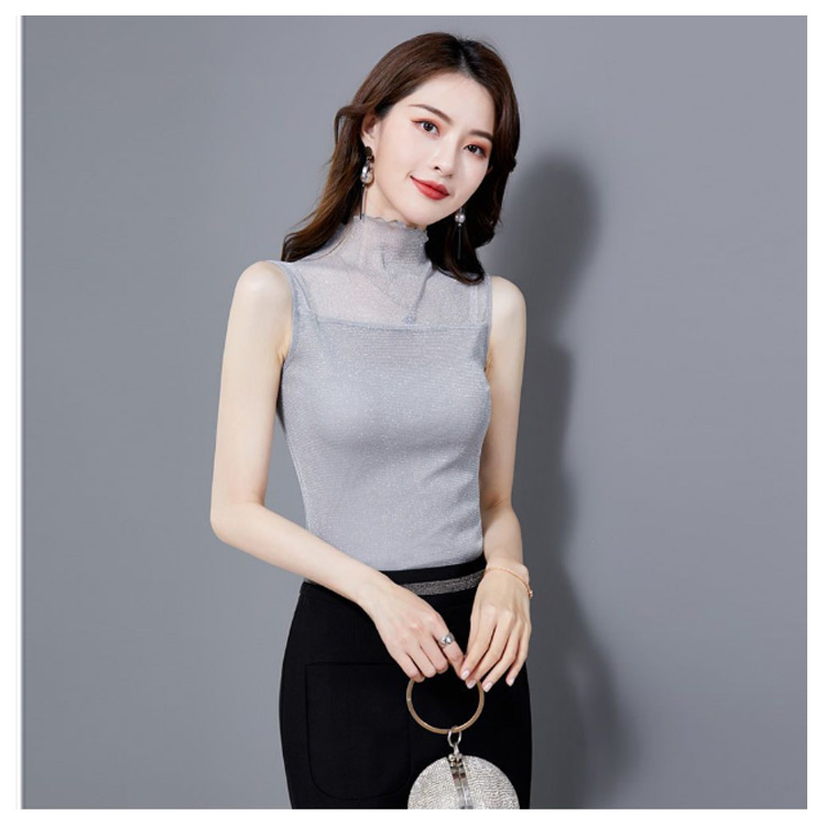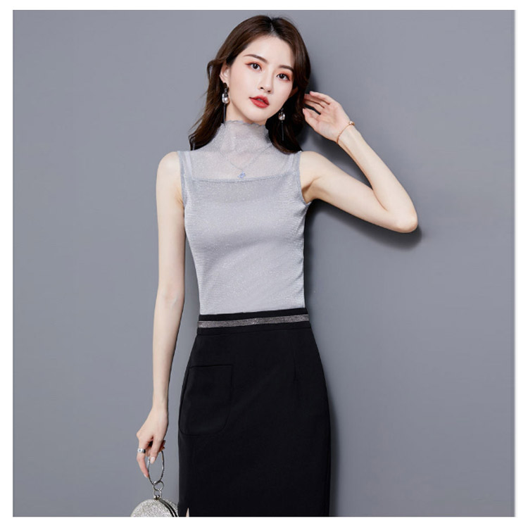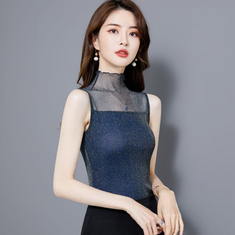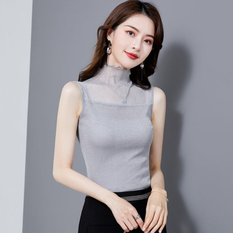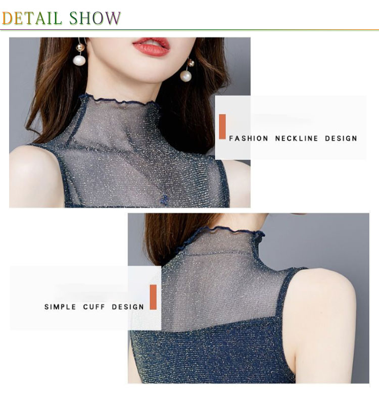 キラキラ シアー トップス インナー レディース ノースリーブ シースルー タンクトップ ハイネック タイト Tシャツ ラメ入り メッシュトップス おしゃれ かわいい 春 夏 S M L XL 2XL