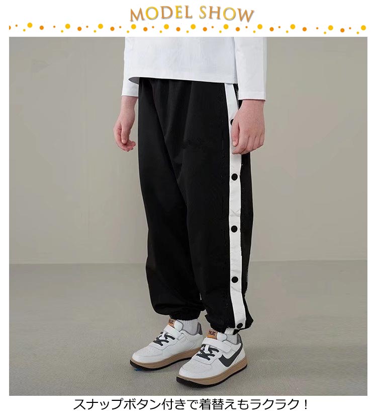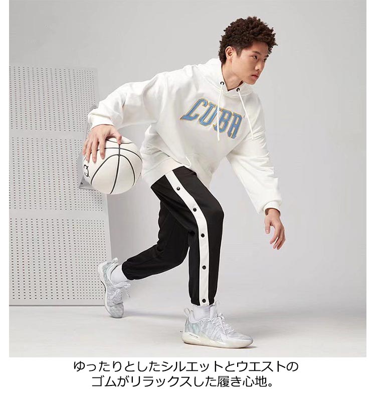 | 110cm~170cm!サイドのラインがポイントのバスケットパンツ。 スナップボタン付きで着替えもラクラク! 柔らかく、通気性も良いスウェット素材を使用。一日中快適に着用できます。 ゆったりとしたシルエットとウエストのゴムがリラックスした履き心地。 バスケットボール?ミニバスケットボールの練習着から、ジムやトレーニングウエアとしても使えます。 休日のカジュアルスタイルにも大活躍してくれます。 | |