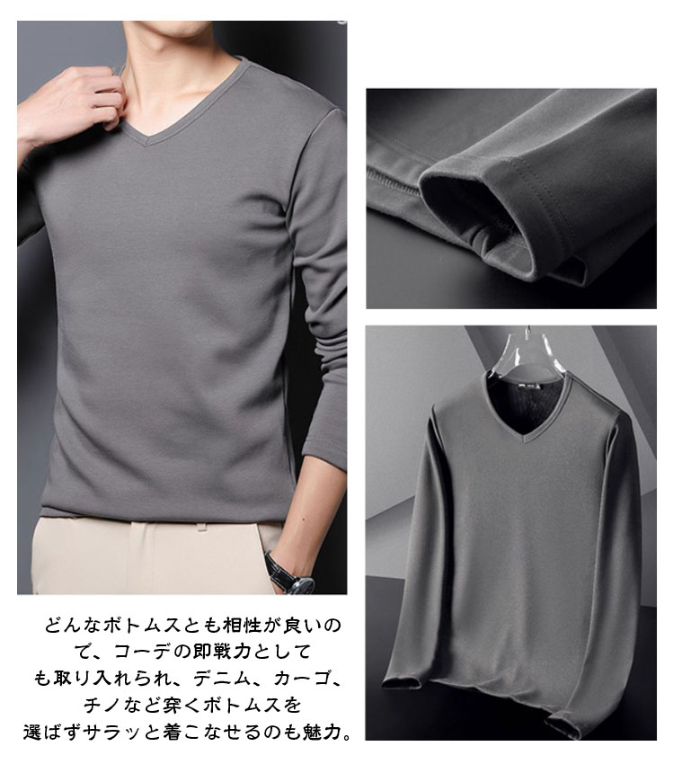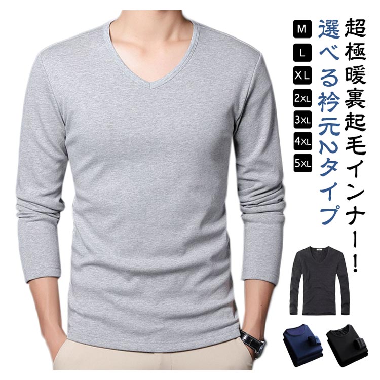 裏起毛 インナー あったか メンズ 暖かい 裏起毛 vネック インナー ロンT選べる衿元2タイプ あったかインナー 裏起毛 ストレッチ Vネック長袖Tシャツ メンズ 防寒 保温 ストレッチ 下着 暖かい V首 スノボード ビジネス