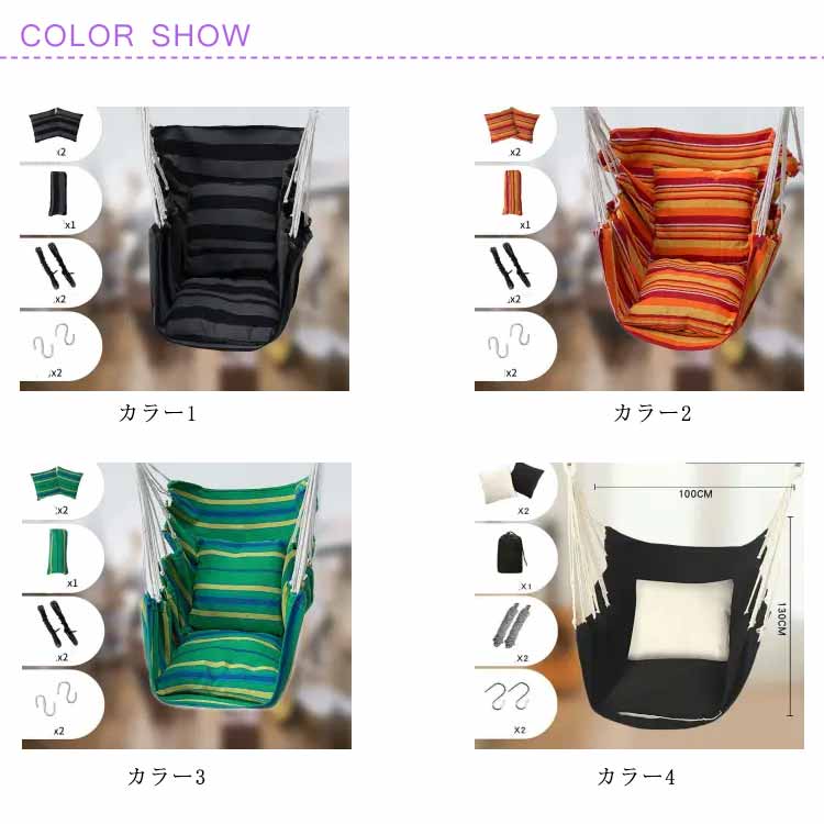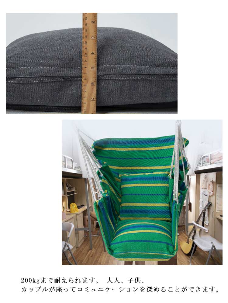 このハンモックチェアは素材として高品質の綿を採用しており、肌にやさしい。通気性が良く、長時間使用できます。軽くてコンパクトに収納できるから、持ち運ぶ時も便利です。収納袋が付いているので、外出時にもとても便利です。200kgまで耐えられます。 大人、子供、カップルが座ってコミュニケーションを深めることができます。自宅、アウトドア、ビーチ、キャンプ、釣り、ハンモック泊、ソロキャンプ等々の場面に適用。裏庭、ポーチ、バルコニーまたはコテージに吊り下げることができます。一人でも楽に組み立てられます。