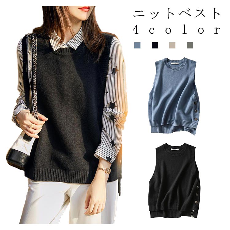 送料無料 ニットベスト レディース クールネック トップス 女性 ノースリーブ セーター uネック カジュアル 通勤 女性 おしゃれ ファッション 秋冬