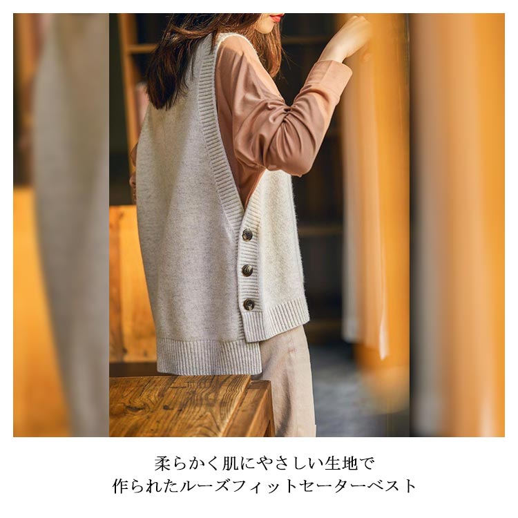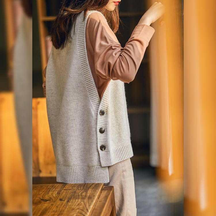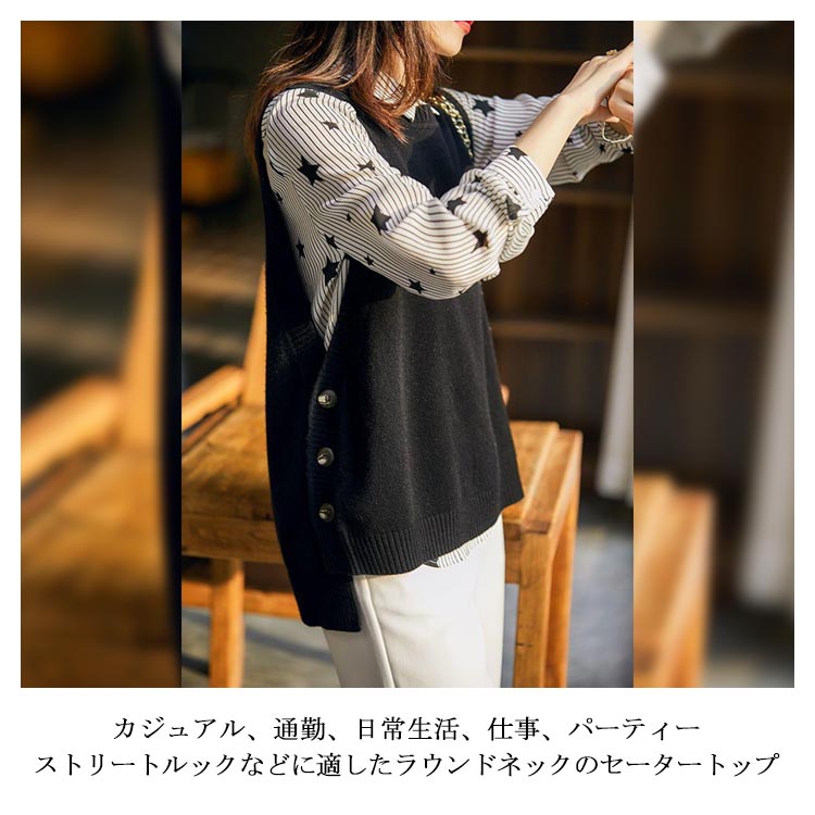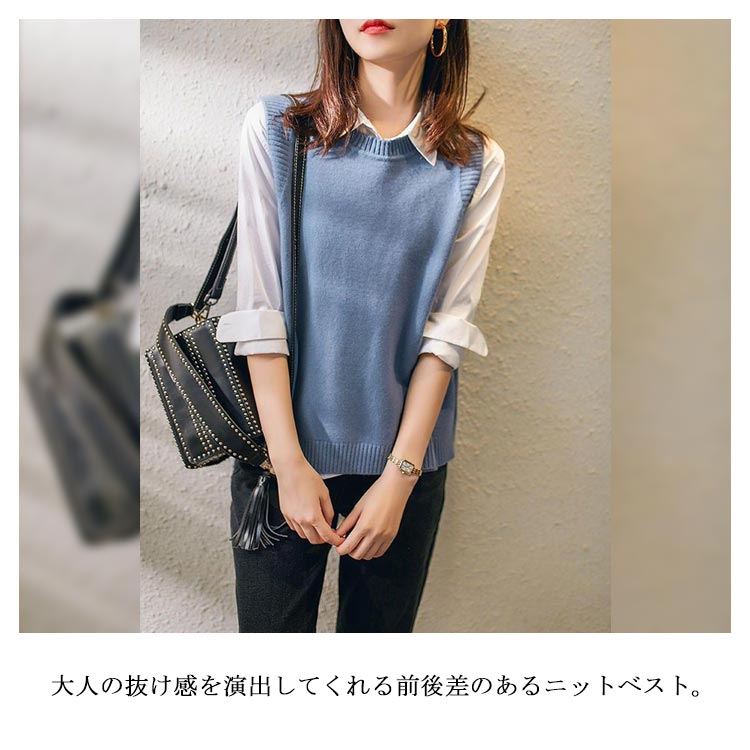 大人気のニットベスト。柔らかく肌にやさしい生地で作られたルーズフィットセーターベスト。大人の抜け感を演出してくれる前後差のあるニットベスト。後ろはお尻が隠れる程度のちょうどよい長さで体型カバーもできます。カジュアル、通勤、日常生活、仕事、パーティー、ストリートルックなどに適したラウンドネックのセータートップ。