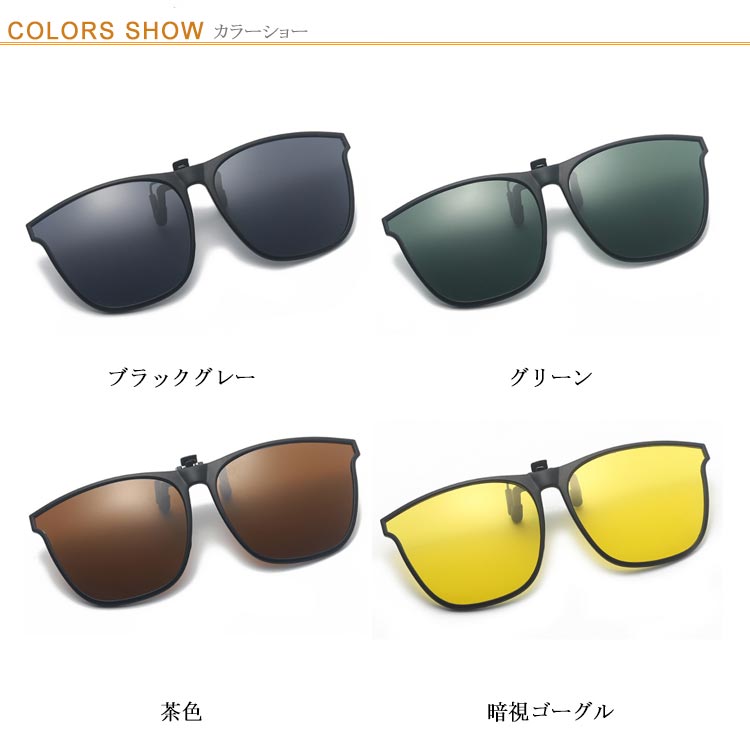 クリップオンサングラス 調光 偏光 跳ね上げ式 夜間運転 日夜兼用 クリップ式サングラス ワンタッチ装着 かけたまま メンズ レディース 眼鏡にはさむ 装着 クリップオン 調光サングラス 偏光サングラス UVカット 軽量 釣り ドライブ 運転用