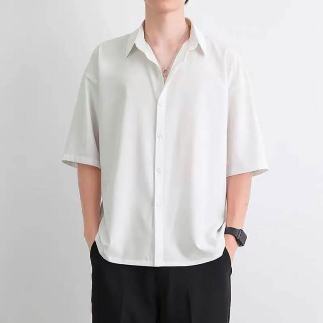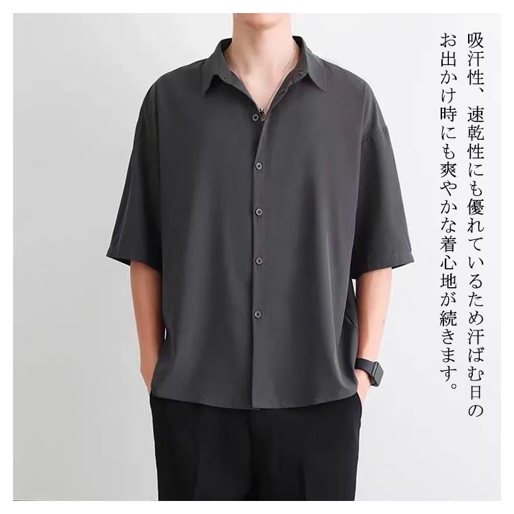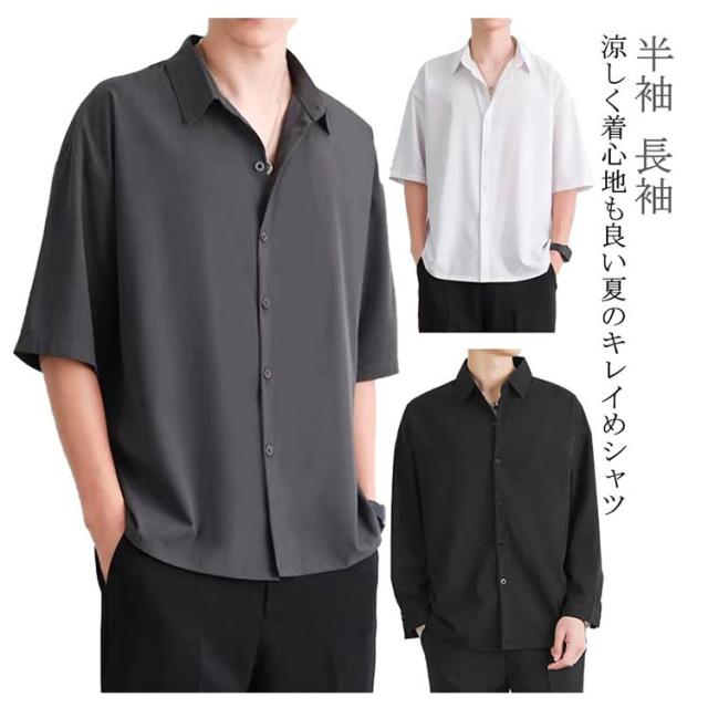 シャツ メンズ ゆる 五分袖 半袖 長袖 サマーシャツ 涼しい 接触冷感 ワイシャツ 韓国 ポロネック オーバーサイズ 爽やか 開襟シャツ 快適 速乾 派手 ストリート系 トップス カジュアル サラサラ ビジネス ワイシャツ ゆったり 夏 秋 ボタンダウン 春 無地 送料無料