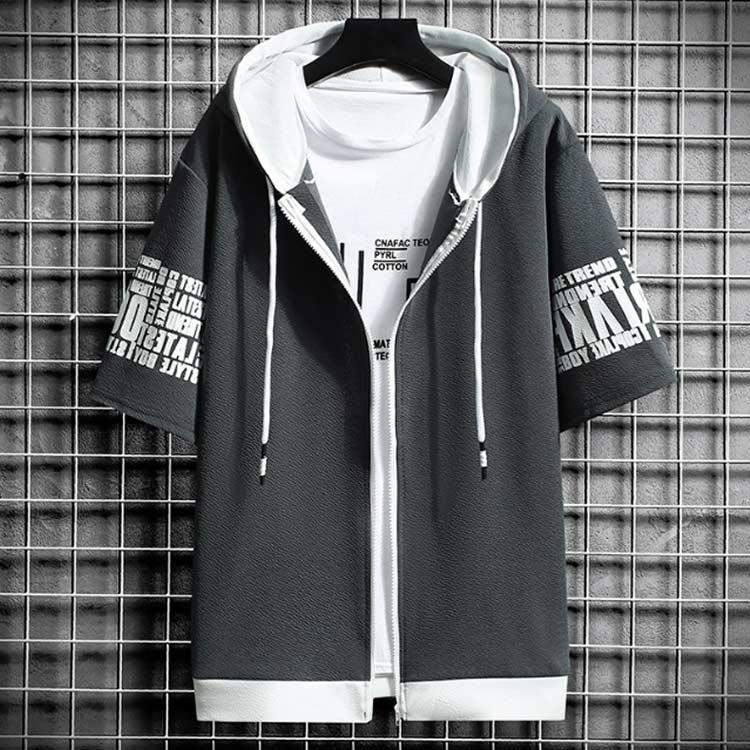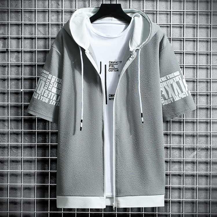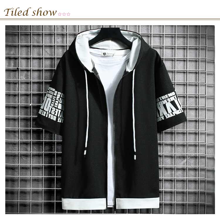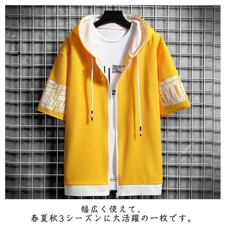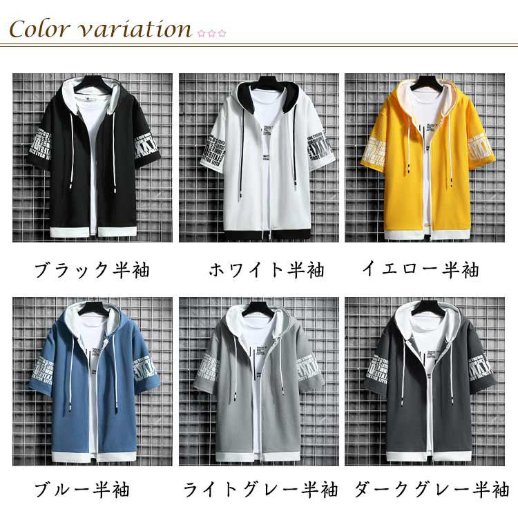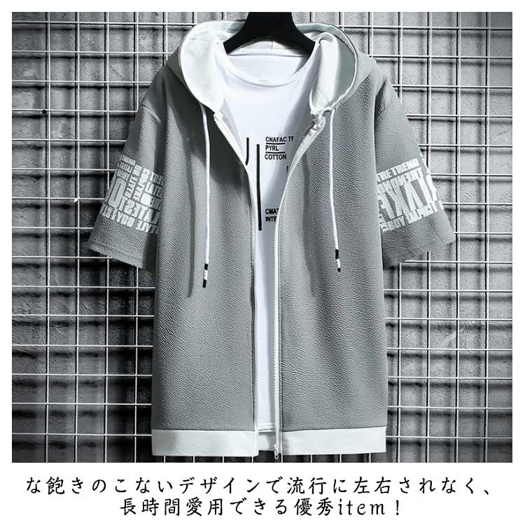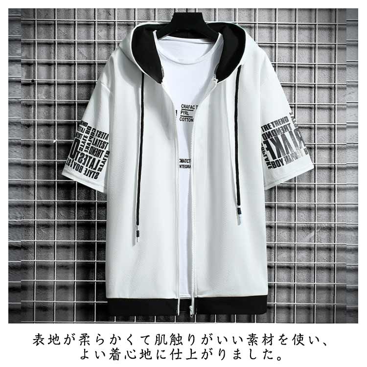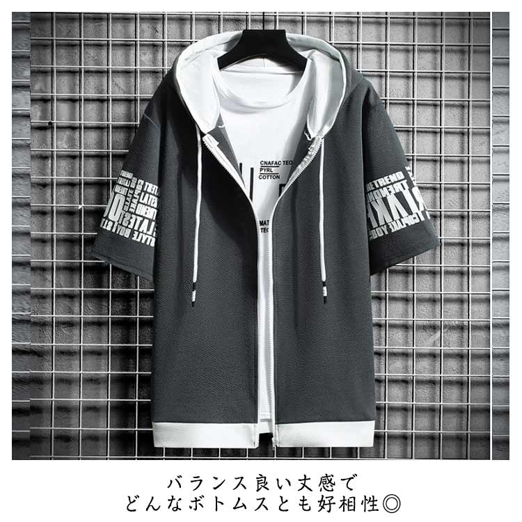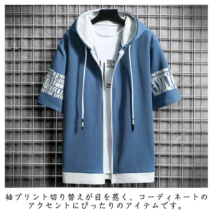 切り替え 半袖パーカー パーカー ジップアップ メンズ パーカ トップス プリント フード付き 春服 春物 夏 夏服 夏物 秋服 秋物 半袖 長袖 運動着 部屋着 ルームウェア スポーツウェア