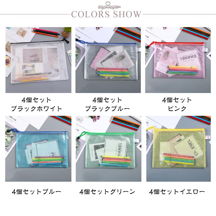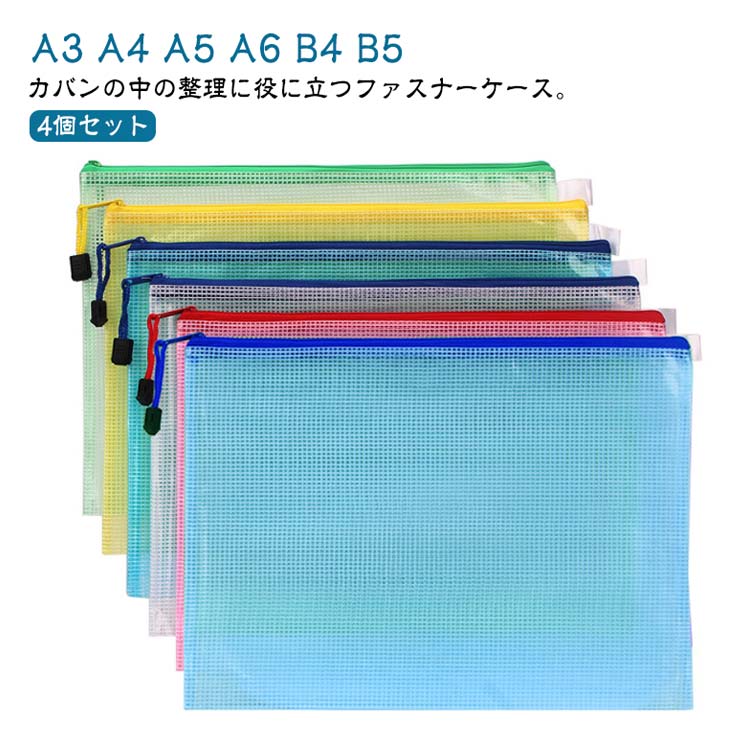 マルチケース A3 A4 A5 A6 B4 B5 整理 プリント入れ スライドファスナー 書類 収納 ケース 4個組 書類 収納 ファイル 保管 送料無料 クリアケース 収容 A4 透明ケース 分類 B5 インナーケース クリアファイル 保存 会社 学校 連絡袋 ノート 便箋 ファスナーケース