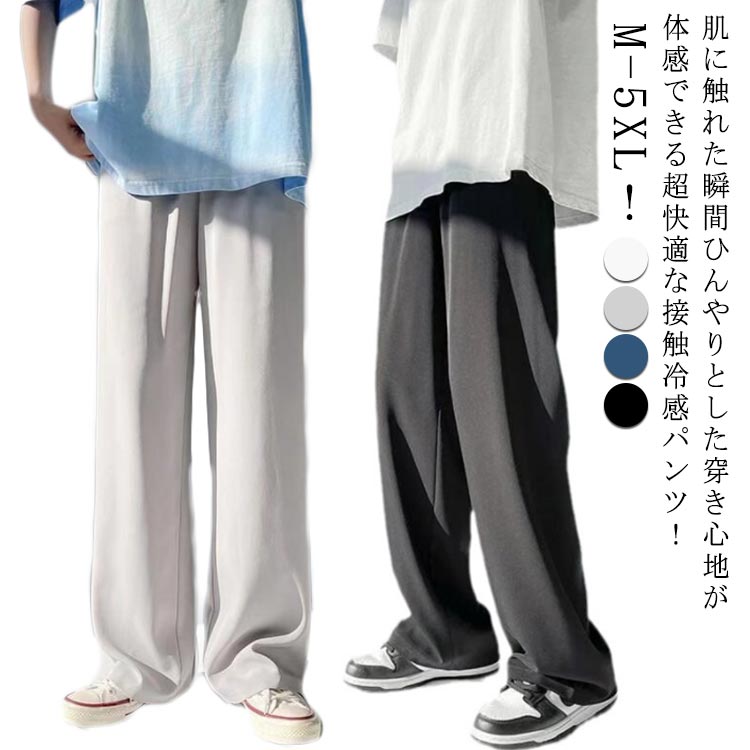 冷感パンツ メンズ 夏 接触冷感 ワイドパンツ アイスシルクパンツ ロングパンツイージーパンツ ゆったり 大きいサイズ ひんやり 涼しい チノパン 夏服 ストレートパンツ 長ズボン スポーツ 韓国 ファッション ストリート おしゃれ ボトムス M-5XL 送料無料