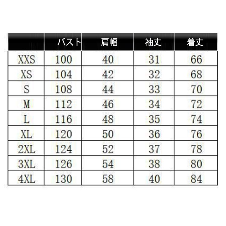 | サイズ | XXS XS S M L XL 2XL 3XL 4XL |