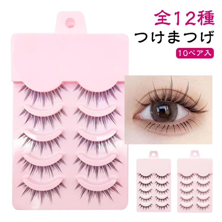 【10ペア入り】つけまつげ 全12種 簡単 盛れる 束感 束 ナチュラル アイラッシュ 取れない つけま つけまつ毛 自然 セルフ ブラック 黒 睫毛 まつ毛 まつげ 付けまつげ 付け睫毛 上まつげ ベースメイク メイクアップ 上まつ毛用 送料無料