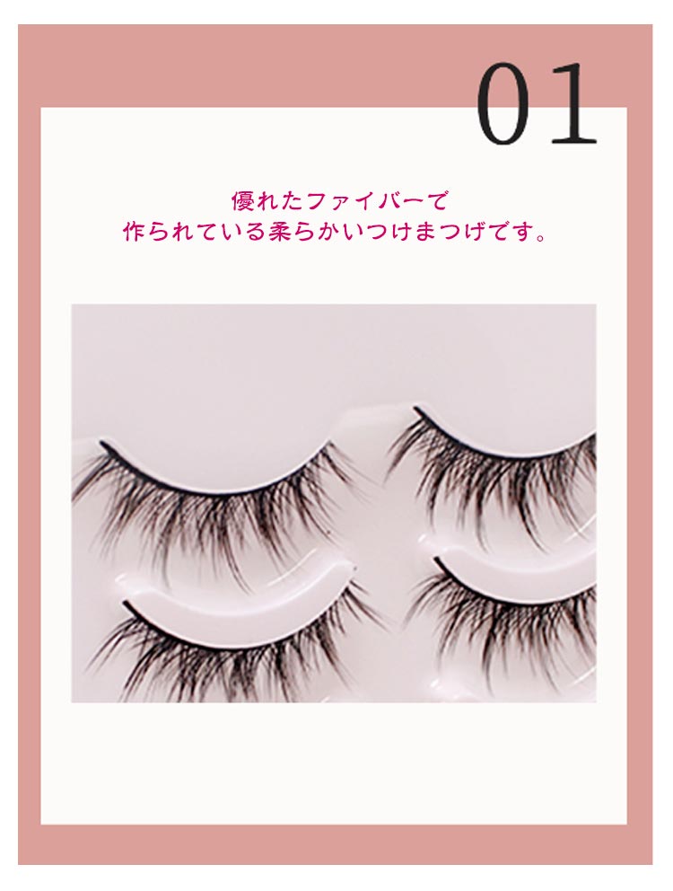 | 【つけまつげ】【10ペア入】【全12種】 自まつ毛にナチュラルに馴染む、まるで羽根のようなふんわりまつ毛、ありのままの自分を輝かせるメイクアップラッシュです。 付け心地抜群の軽さと自まつ毛になじむ柔らかさ! 優れたファイバーで作られている柔らかいつけまつげです。 超軽量で結び目もなく、快適に使えます。 自然にカールしていて、より良いナチュラルなアイラッシュです。 | |