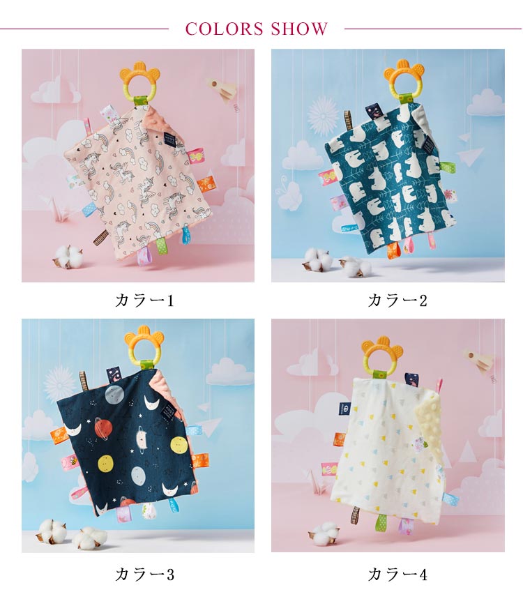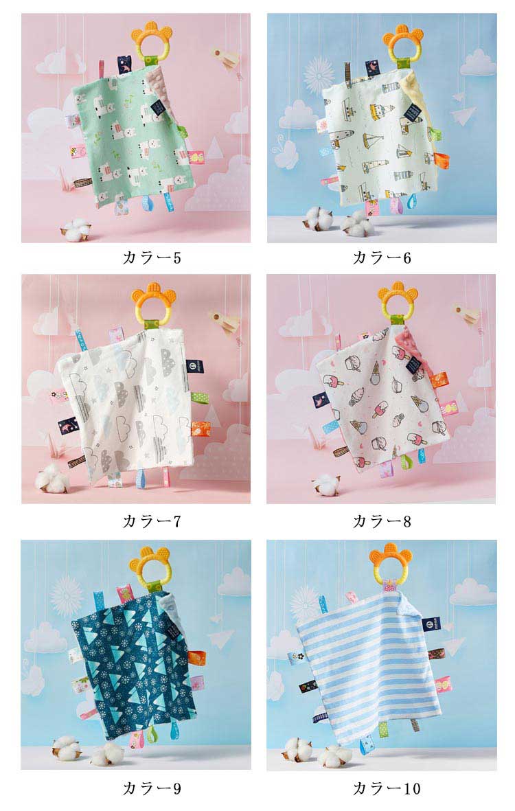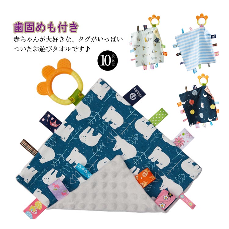 赤ちゃん タグ付きタオル 歯固め付き タグタオル 遊びタオル おもちゃ 玩具 ハンカチタオル 視覚 触覚 安心 安全 ベビー 出産祝い プレゼント 誕生日 ギフト 布のおもちゃ ベビータオル シリコン はがため 歯がため 知育玩具 新生児