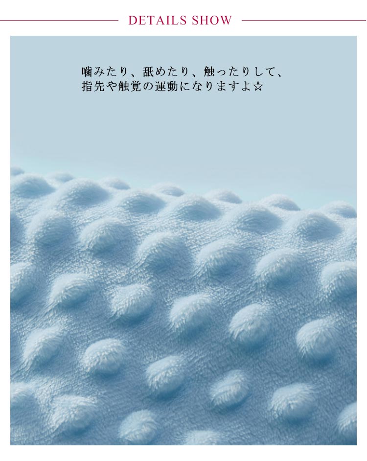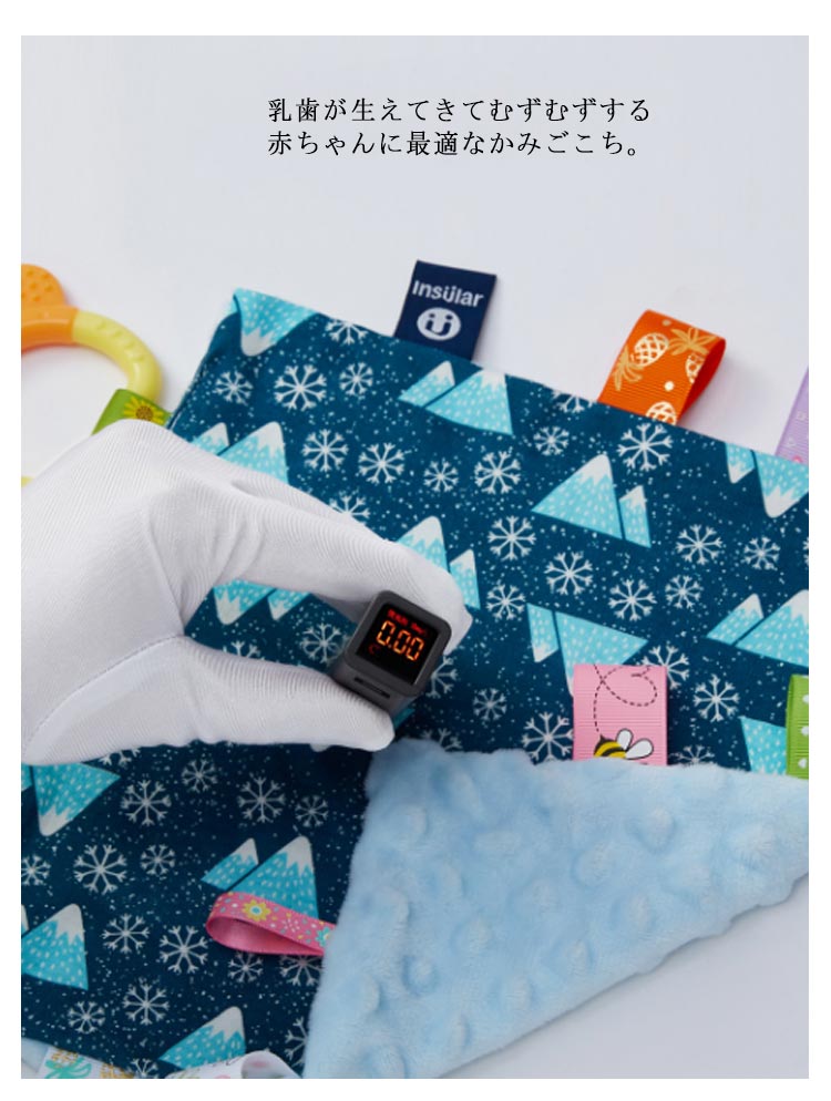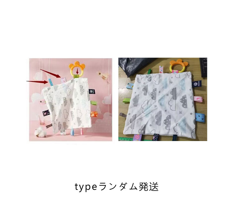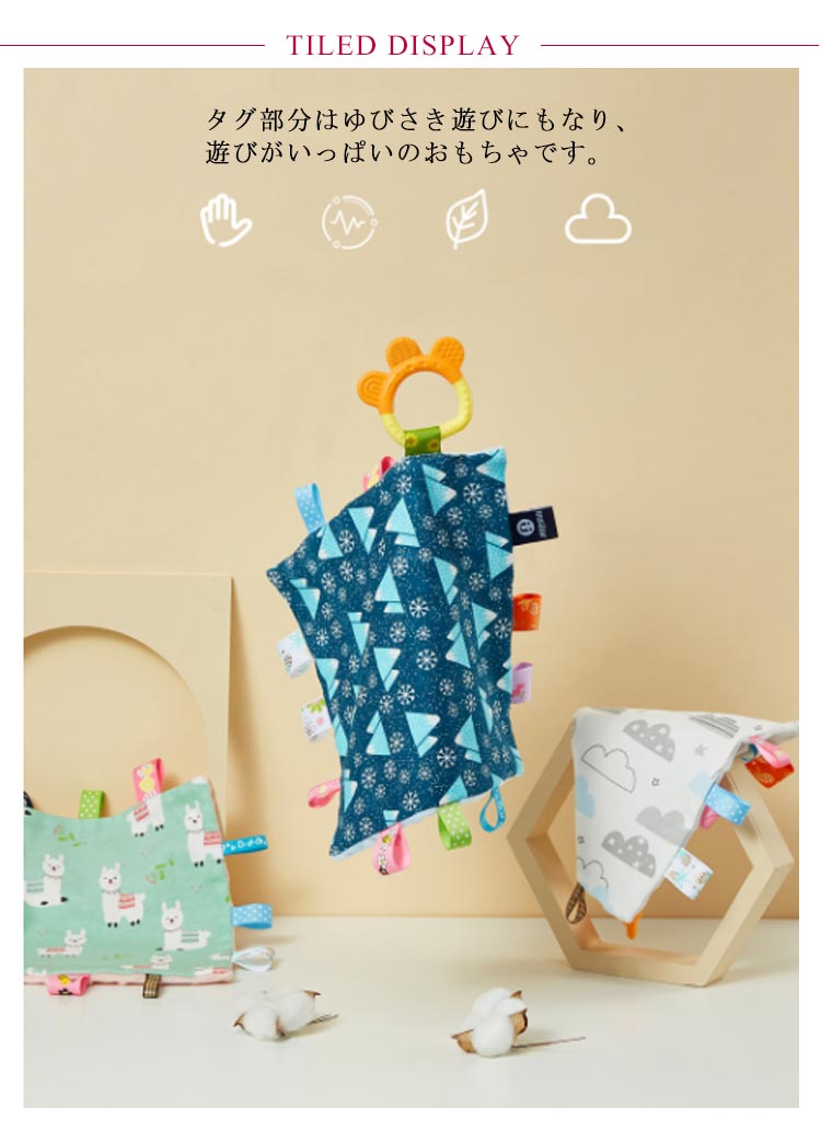 | 赤ちゃんが大好きな、タグがいっぱいついたお遊びタオルです?歯固めも付き。 タグ部分はゆびさき遊びにもなり、遊びがいっぱいのおもちゃです。 乳歯が生えてきてむずむずする赤ちゃんに最適なかみごこち。 ふんわり柔らかい素材で、ずっと触っていたくなりそうな肌触りです★ 噛みたり、舐めたり、触ったりして、指先や触覚の運動になりますよ☆ | |