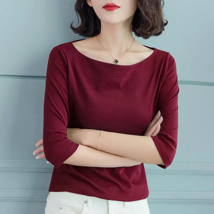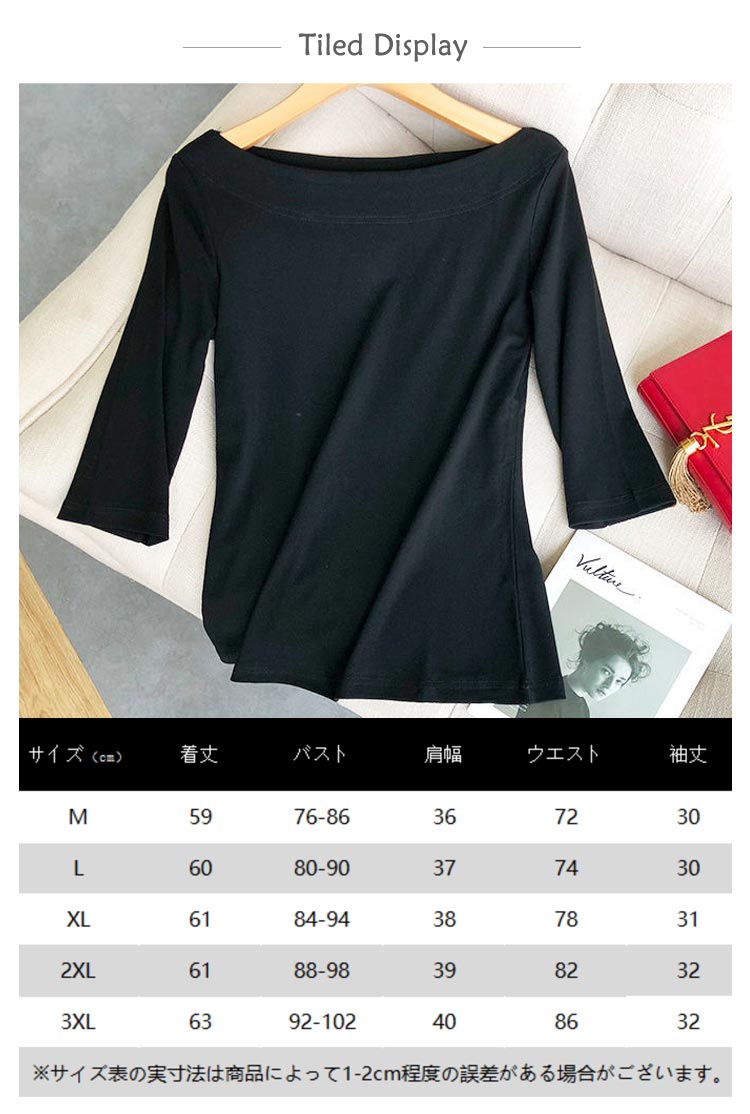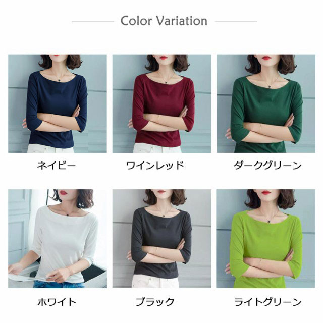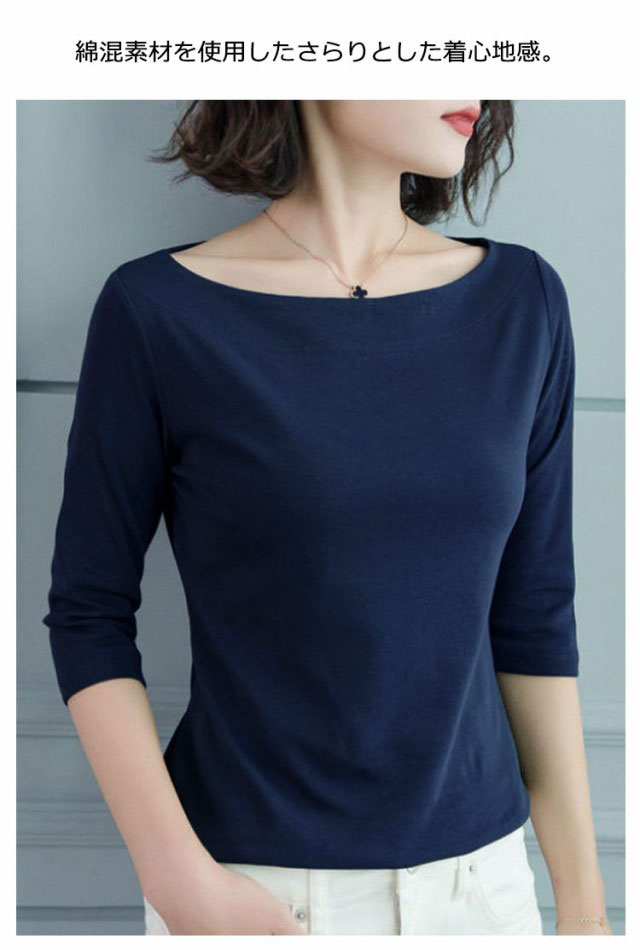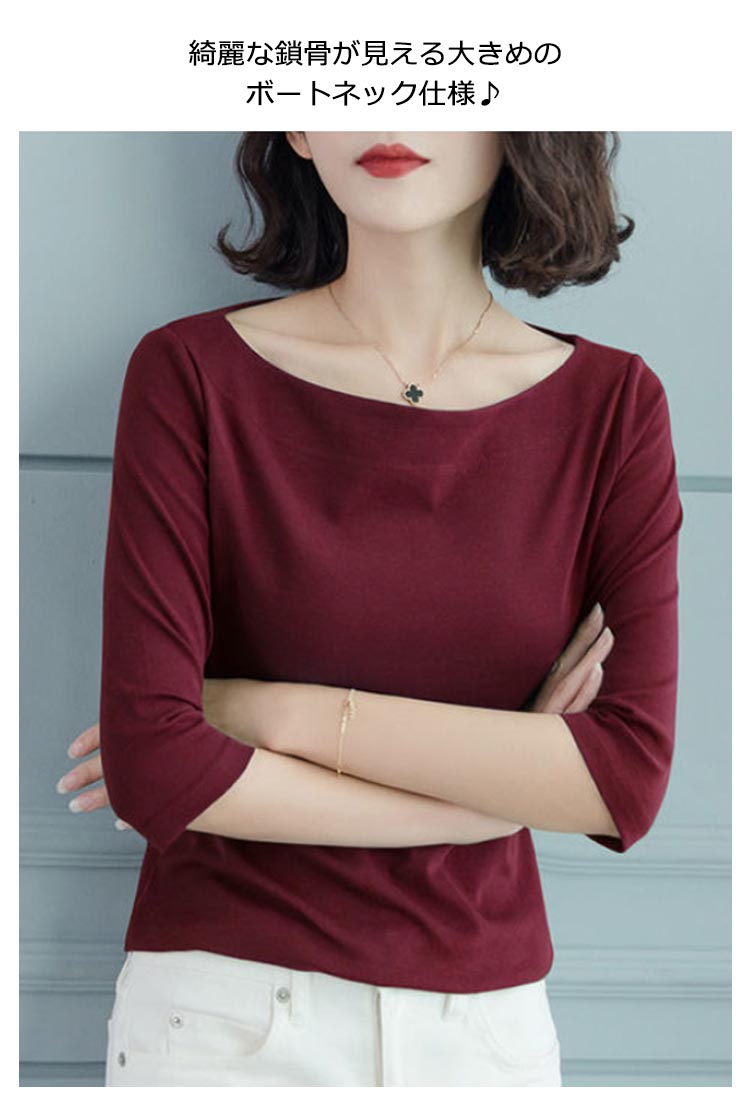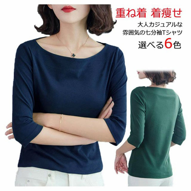Tシャツ レディース 七分袖 五分袖 トップス カットソー 七分袖tシャツ ボートネック 大人 女性 インナー 重ね着 無地 シンプル カジュアル 大きいサイズ 着瘦せ 上品 トップス 通勤 OL オフィス プレゼント ギフト 送料無料 20代 30代 40代