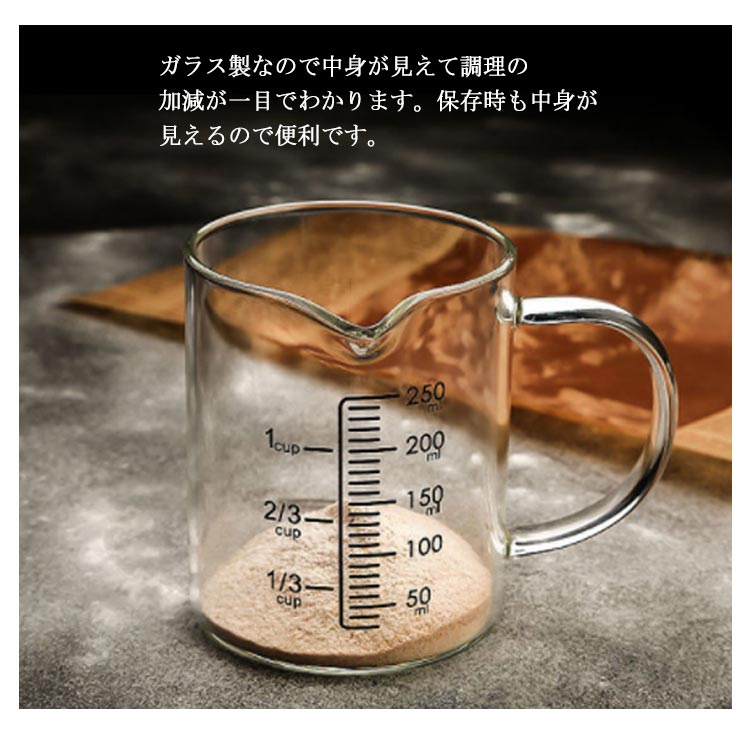 | 食洗機や電子レンジでもお使い頂けるガラス計量カップ ガラス製なので色や臭い移りが無く、いろいろと使いまわすことができて便利。 注ぎ口が付いているので、液体を注ぐ時もこぼれにくいです。 本体は強化ガラスで出来ているので、とても丈夫ですし、電子レンジでの使用もオッケー。ミルクを温めたり、何かと重宝しますよ。 選べる蓋タイプ、ニーズに合わせてお選びいただけるのも嬉しいポイント。 ガラス製なので中身が見えて調理の加減が一目でわかります。保存時も中身が見えるので便利です。 | |