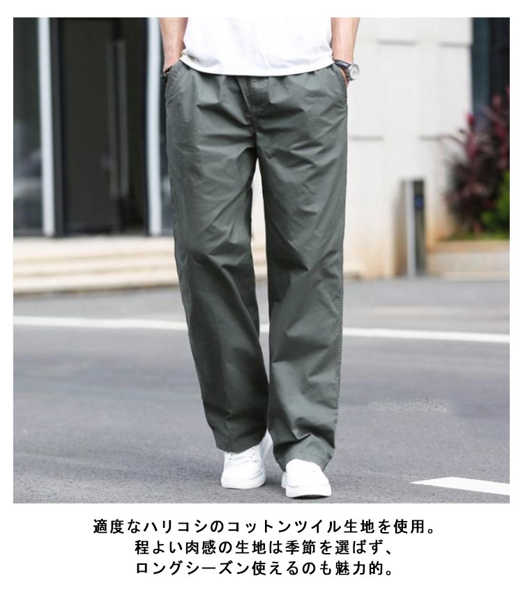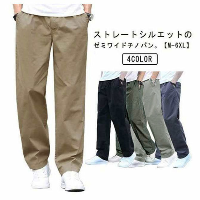 チノパン ワイド メンズ ストレートパンツ ワイドパンツ チノパンツ コットン 綿 ツイル生地 ワークパンツ ゴムウエスト カジュアルパンツ 春 秋 冬 長ズボン 綿パンツ 作業着 ツイルパンツ チノパン 大きいサイズ M L XL 2XL 3XL 4XL 【送無】