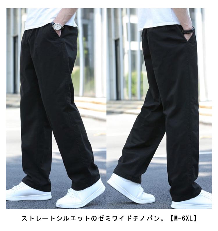 | ストレートシルエットのゼミワイドチノパン。【M-6XL】 ストレートのルーズシルエットに仕上げ、シンプルながらトレンド感のあるアイテム。 ゴムウエスト仕様で、体にフィットするストレスのない穿き心地に。 適度なハリコシのコットンツイル生地を使用。程よい肉感の生地は季節を選ばず、ロングシーズン使えるのも魅力的。 カジュアル、ストリート、古着テイストなスタイリングに使えます!! | |