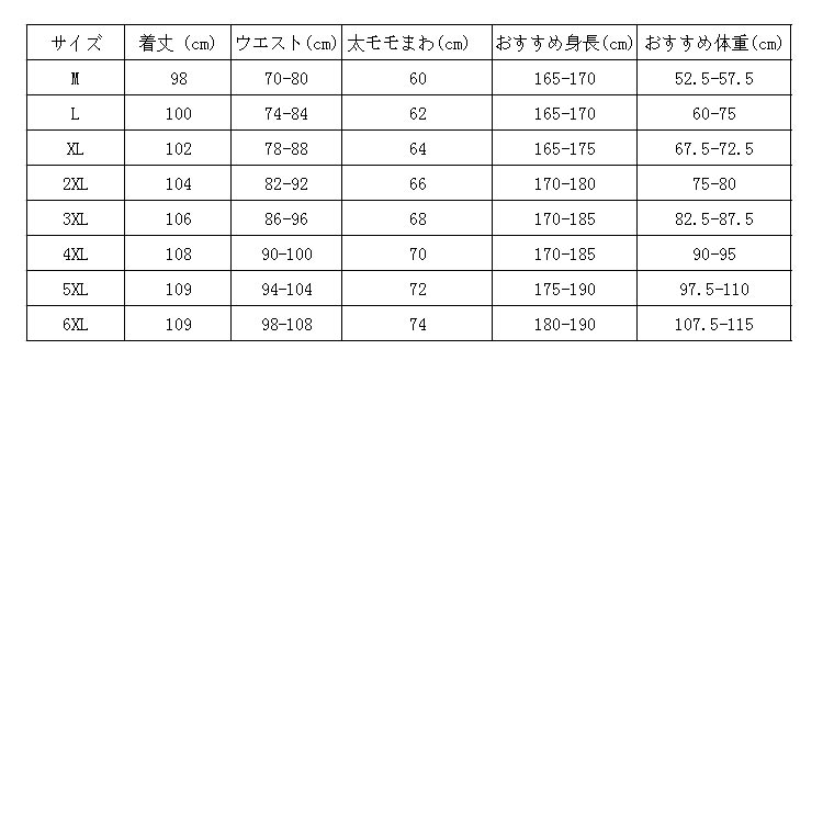 | サイズ | M L XL 2XL 3XL 4XL 5XL 6XL |