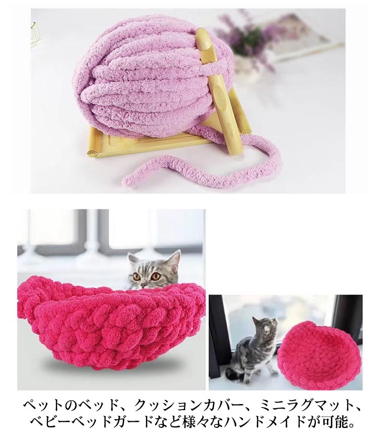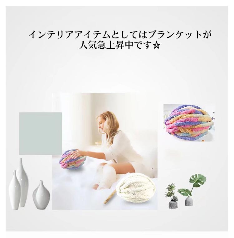 表面起毛モコモコふわふわの肌触りであったかニットの太チャンキーヤーン腕や手を使って、簡単にふわふわのブランケットが完成!太い糸で、すぐに編めるのでザクザクすぐに完成してしまうところも魅力の1つインテリアアイテムとしてはブランケットが人気急上昇中です☆起毛で肌触り抜群。防寒性にも優れているので、寒い冬を快適に過ごすのに最適。ペットのベッド、クッションカバー、ミニラグマット、ベビーベッドガードなど様々なハンドメイドが可能。