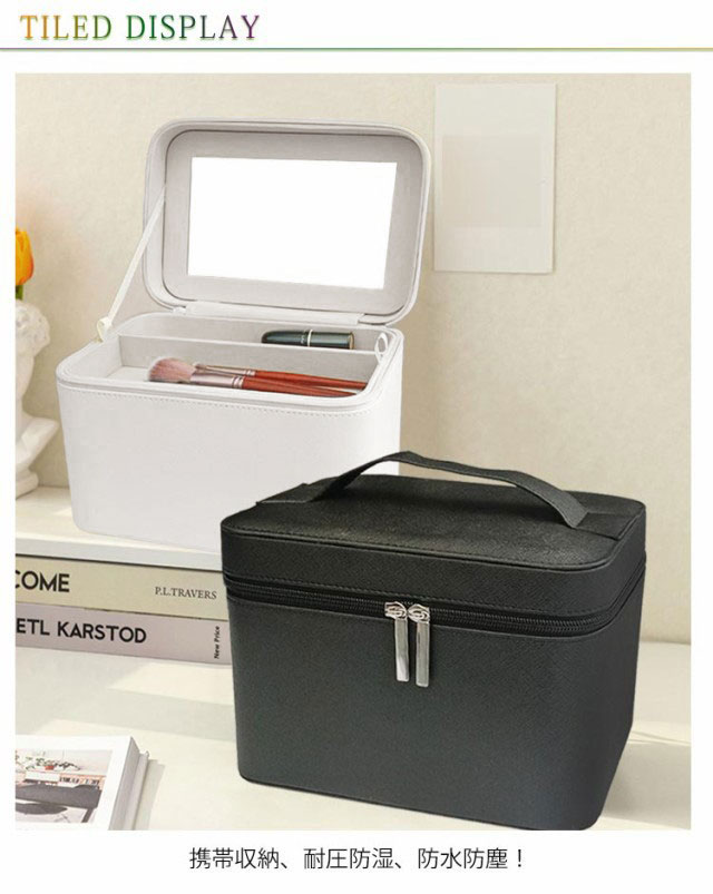 毎日使う大切なお化粧品をしっかりガード、丈夫な大容量メイクボックスです!携帯収納、耐圧防湿、防水防塵!ハンドルがついているので、持ち運びにも便利ですこのメイクボックスがあれば、お家の中での使用はもちろん、お出かけや旅行などにも持っていけてどこでもメイクができちゃいます