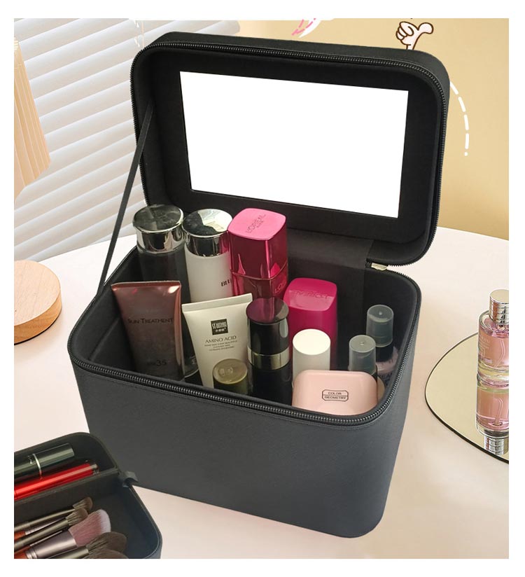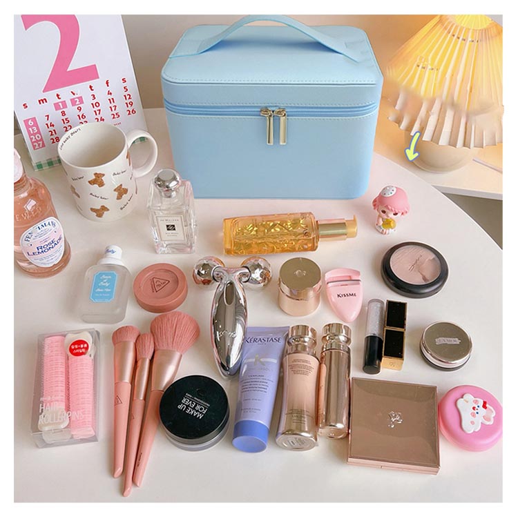 | 毎日使う大切なお化粧品をしっかりガード、丈夫な大容量メイクボックスです! 携帯収納、耐圧防湿、防水防塵! ハンドルがついているので、持ち運びにも便利です このメイクボックスがあれば、お家の中での使用はもちろん、お出かけや旅行などにも持っていけてどこでもメイクができちゃいます | |
