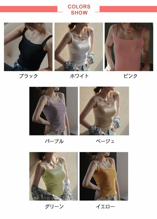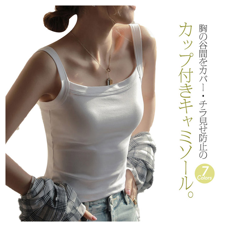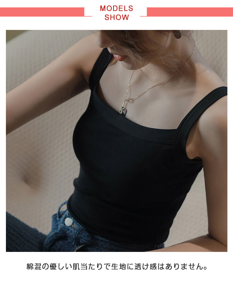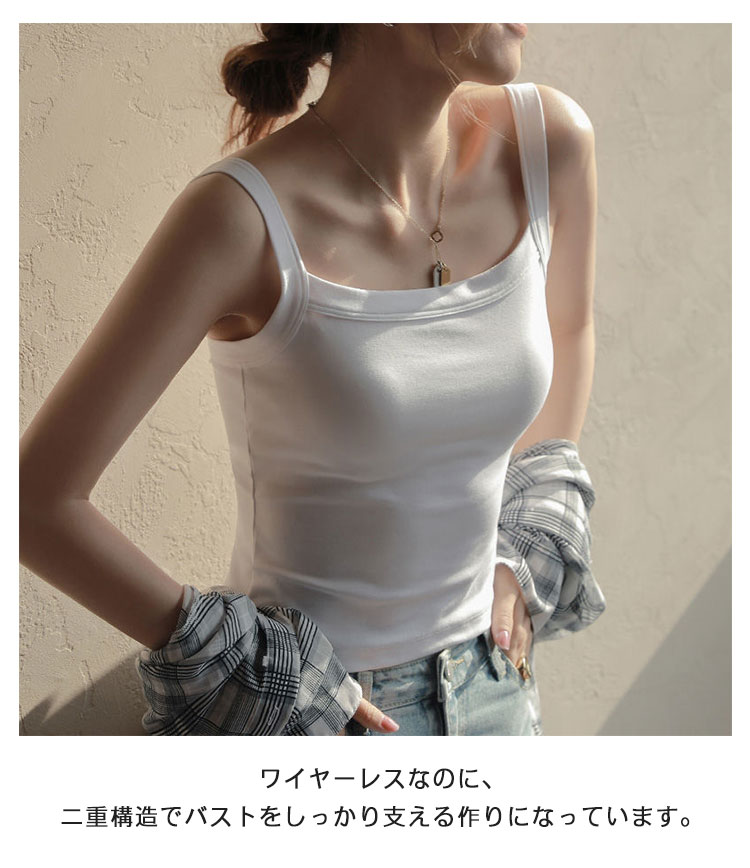 キャミソール カップ付き タンクトップ トップス インナー ブラトップ ブラキャミ スクエアネック ノースリーブ 重ね着 レイヤード パジャマ 部屋着 チラ見せ 定番 タンク 肌着 綿 コットン 送料無料