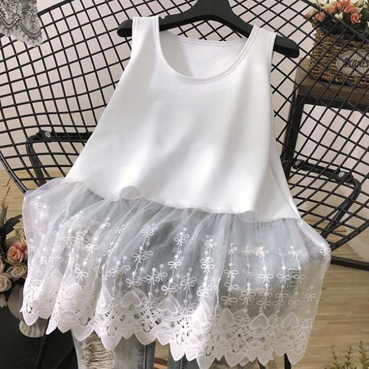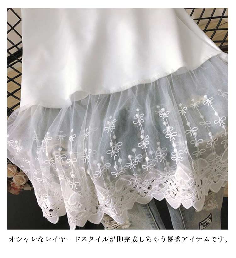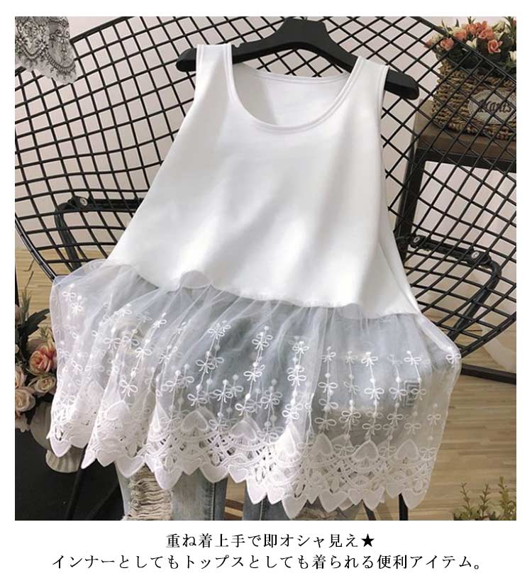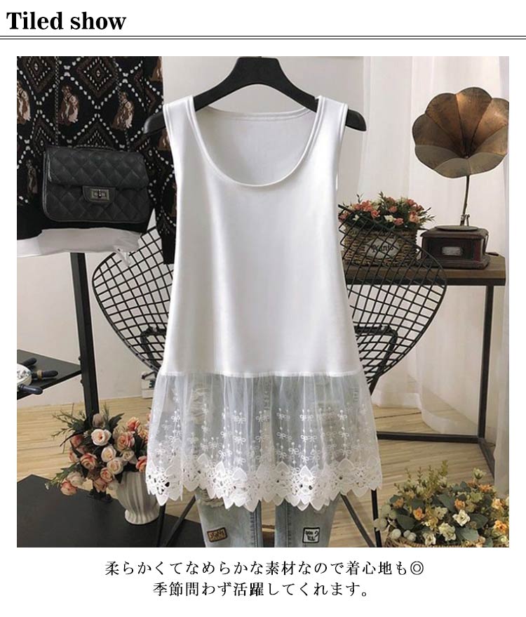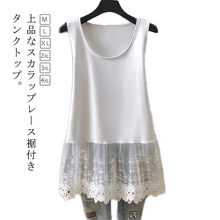 裾見せ タンクトップ ロンt ノースリーブ スカラップレース ロング丈タンクトップ レイヤード風 付け裾 重ね着 小物 トップス 体型カバー お尻が隠れる 大きいサイズ つけすそ レディース 春夏 ロング丈 タンクトップ Tシャツ