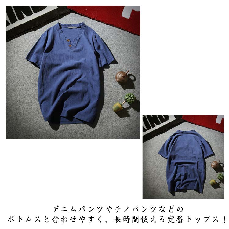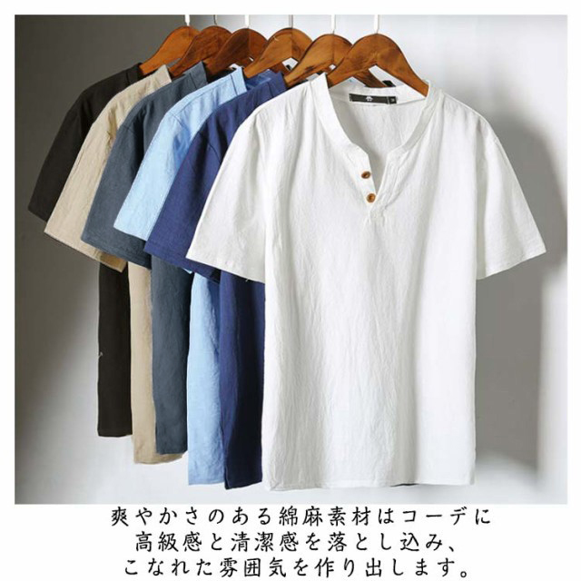 2タイプ!ヘンリーネック 麻 Tシャツ 麻シャツ メンズ ボタンtシャツ 半袖 リネンTシャツ 春 夏 半袖Tシャツ 大きいサイズ ルームウェア 部屋着 父の日 ギフト