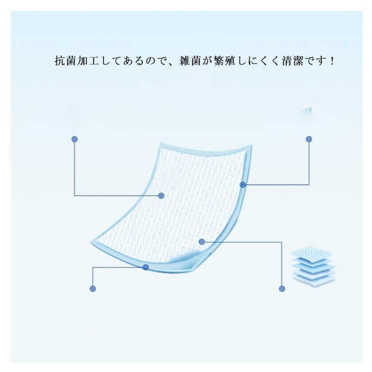 | 気軽に使える使い捨てタイプの防水シーツです? 100枚入り 介護用に最適!防水性シートでシーツや布団への尿モレもしっかり防ぐ! 就寝時、外泊時、寝たままでの清拭時など、モレの心配があるときに便利! 吸水力が強く、逆戻りしにくくなっています。 抗菌加工してあるので、雑菌が繁殖しにくく清潔です! | |