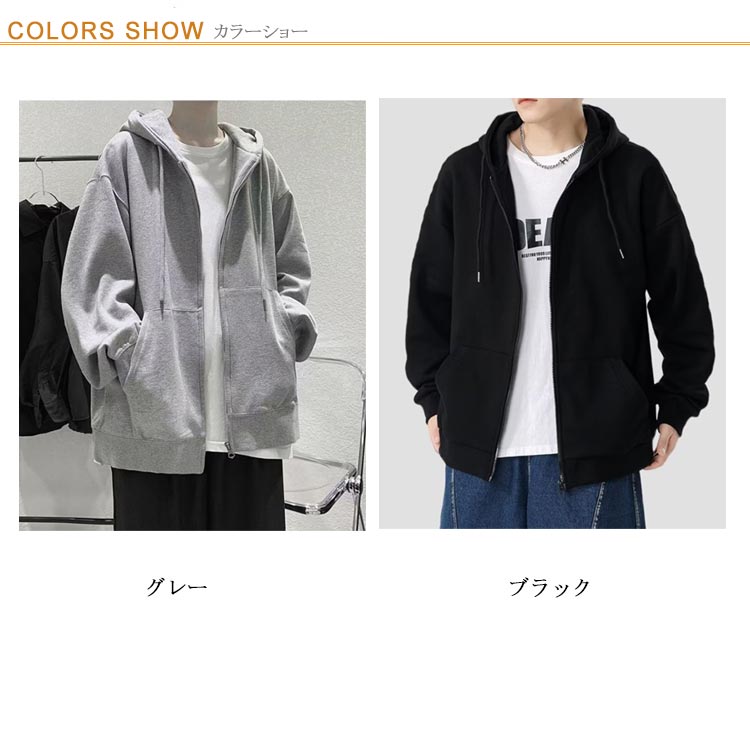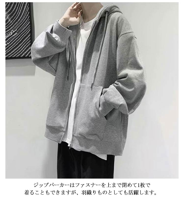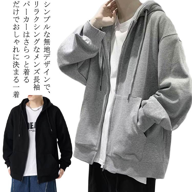 パーカー 無地 カーディガン 長袖パーカー ジップアップ メンズ パーカ 春物 秋物 トップス フード付き 長袖 運動着 部屋着 ルームウェア 薄手 スポーツウェア グレー ブラック 黒 送料無料
