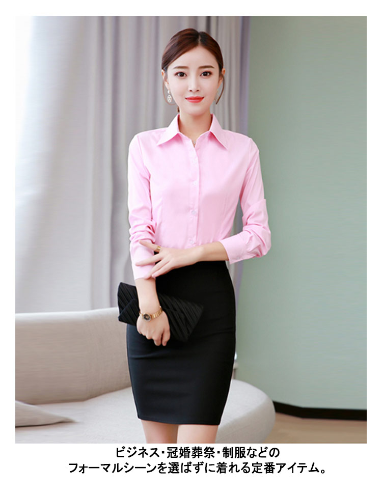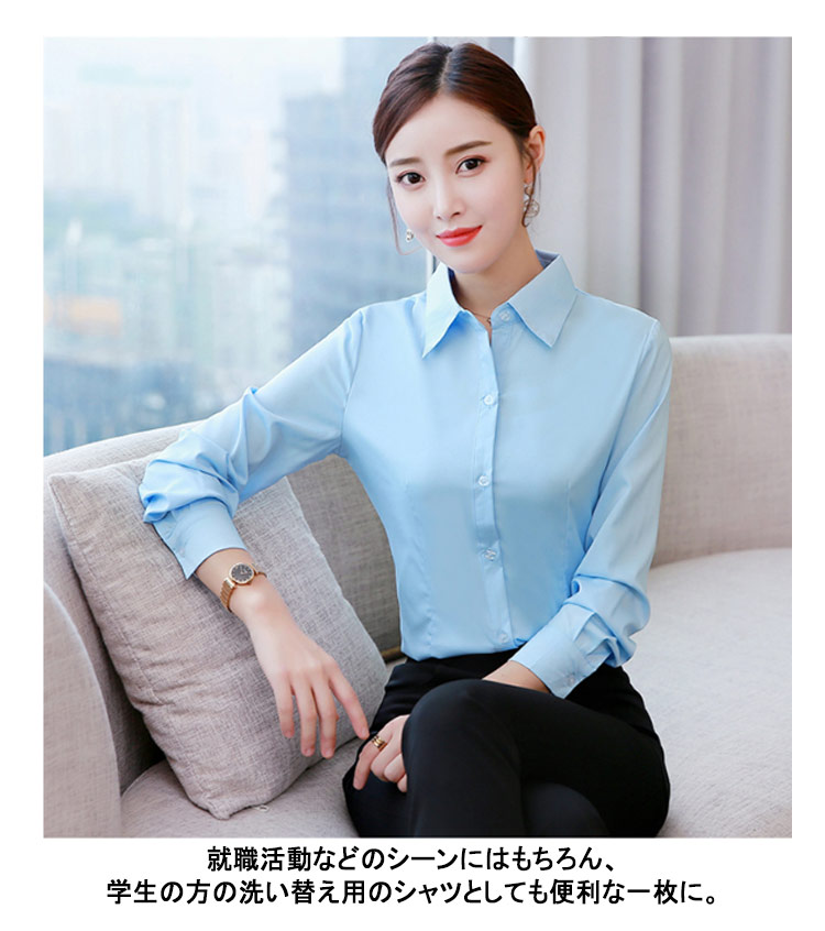 シャツ レディース ワイシャツ 長袖 白シャツ 就活 オフィス レギュラー 黒 事務服 制服 会社 ユニフォーム シンプル 小さい 大きいサイズ スーツ 無地 ホワイト おしゃれ ブラック スリム 半袖 春 夏 秋 ブルー ピンク 送料無料