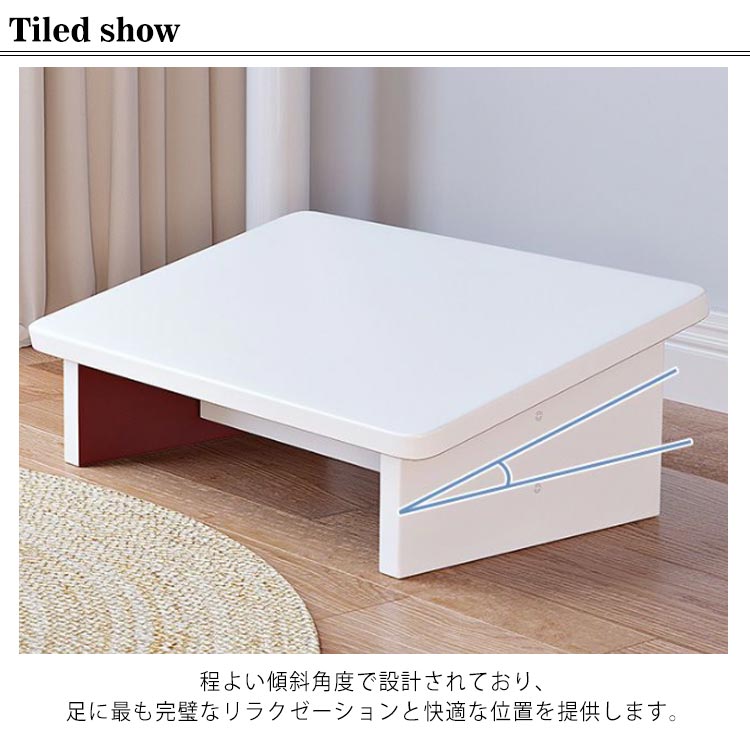 | 足下に置くだけでデスクワークを楽にするフットレストが新登場。 程よい傾斜角度で設計されており、足に最も完璧なリラクゼーションと快適な位置を提供します。 角丸加工済みなので、怪我をする心配がなく、安全性と強度を高めます。 とても頑丈な木材で作られており、地面にしっかりと立っていて、落ちても壊れにくいです。 リビングルームやオフィス、書屋などいろんな場所に適用しています。 | |