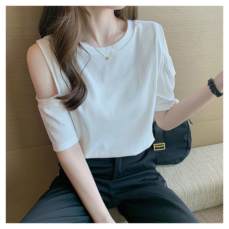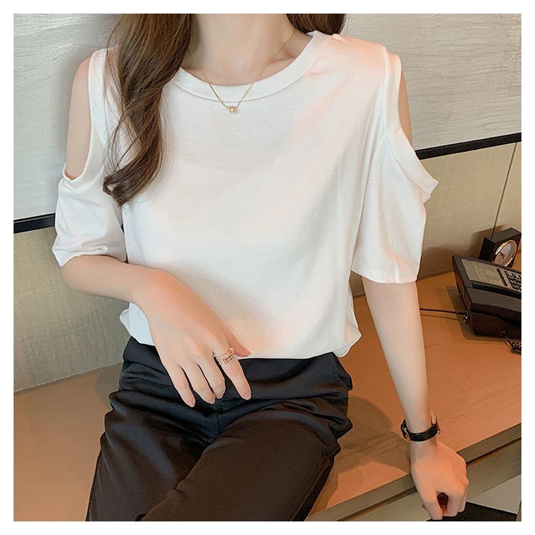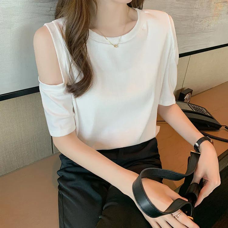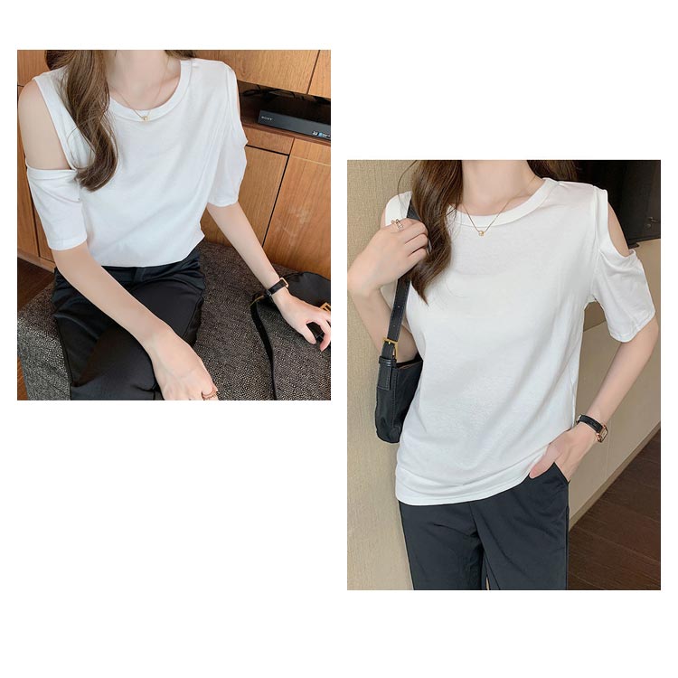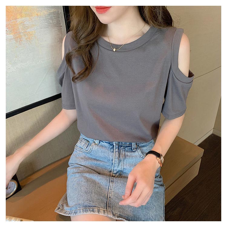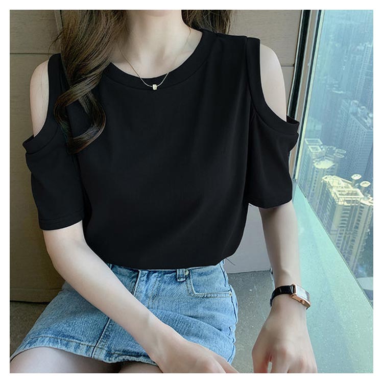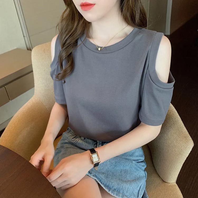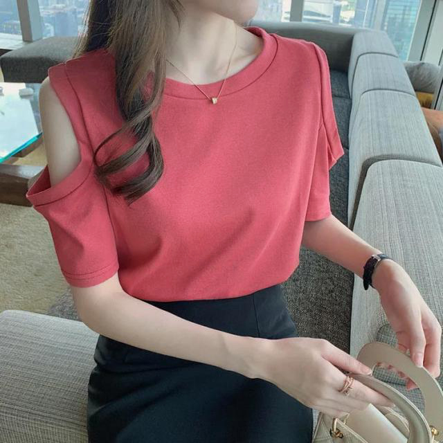 送料無料 オフショルダー カットソー Tシャツ レディース 半袖 オフショル 半袖Tシャツ トップス 肩出し 肩あき 肌見せ クルーネック 夏 無地 ゆったり ビッグTシャツ ブラック ホワイト グレー ピンク