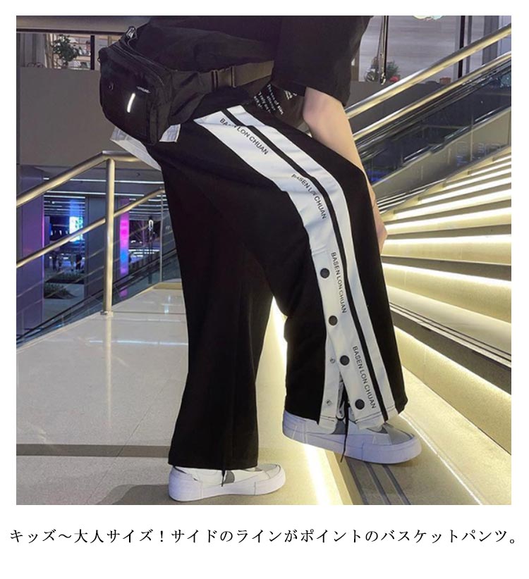 バスケットボールパンツ メンズ レディース キッズ ジュニア ダンスウエア ダンスパンツ バスケパンツ 長ズボン バスパン 長ズボン スナップボタン バスケットパンツ 裾ボタン ロングパンツ ジャージ 下 男の子 サイドボタン サイドライン 送料無料
