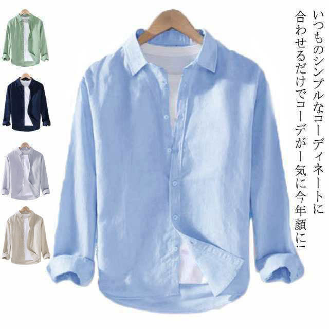 リネンシャツ 麻 長袖シャツ メンズシャツ シャツ メンズ 大きいサイズ 麻混 リネンシャツ 長袖 カジュアルシャツ トップス 涼しい 綿麻シャツ 麻 夏服 春 夏 お出かけ 旅行 おしゃれ 父の日 プレゼント ギフト