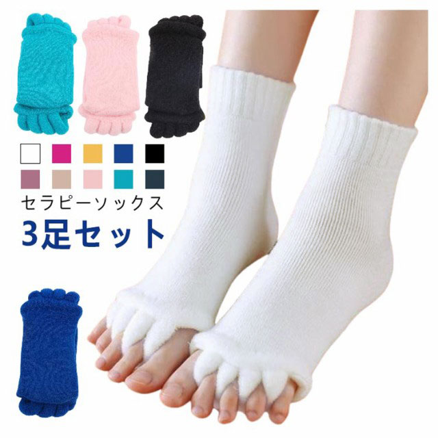 【3足セット】セラピーソックス 外反母趾 予防 足指 広げる むくみ 対策 5本指 靴下 就寝用 スリーピング ルームソックス ヨガ 浮腫 足指 ストレッチ サポーター セラピー ソックス 5本指ソックス レディース メンズ つまさき 爪先 マッサージ