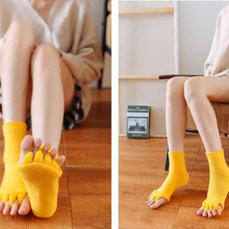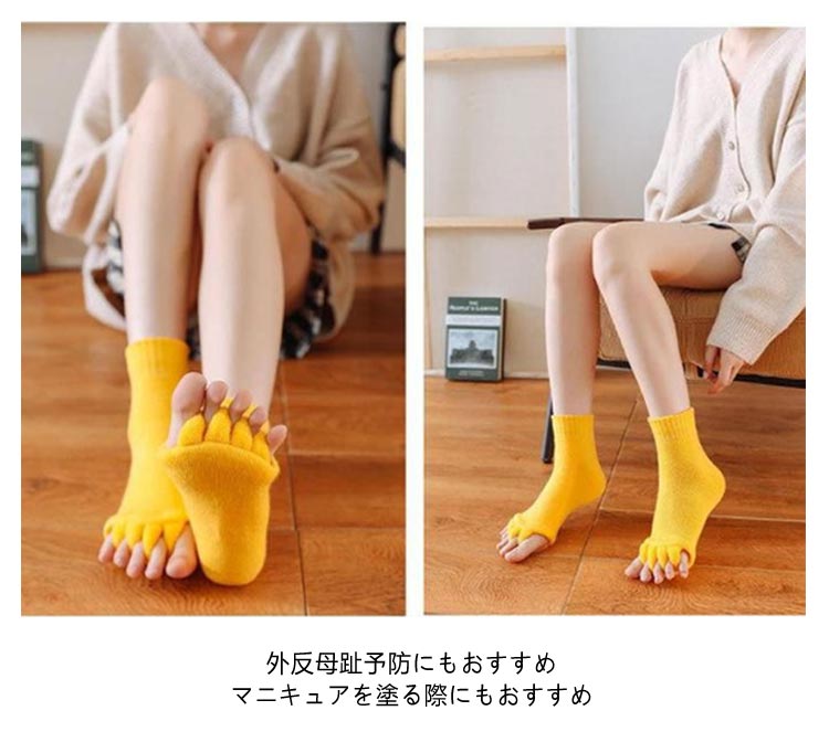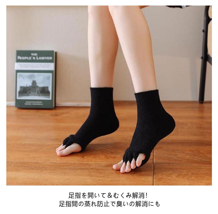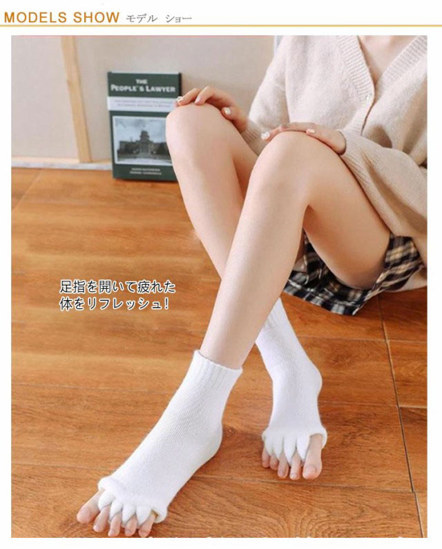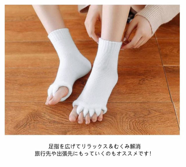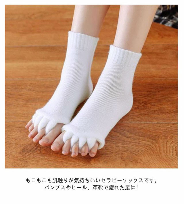 | 【セラピーソックス】【3足セット】 足指を開いて疲れた体をリフレッシュ! もこもこも肌触りが気持ちいいセラピーソックスです。 パンプスやヒール、革靴で疲れた足に! 足指を広げてリラックス&むくみ解消? 旅行先や出張先にもっていくのもオススメです! 足指を開いて&むくみ解消! 足指間の蒸れ防止で臭いの解消にも 外反母趾予防にもおすすめ マニキュアを塗る際にもおすすめ | |
