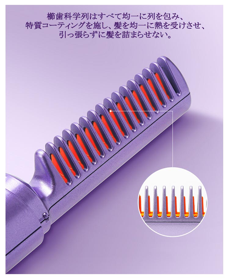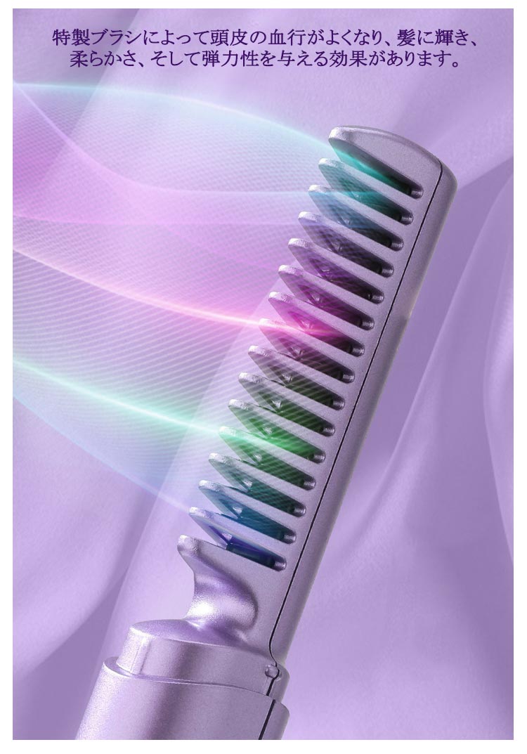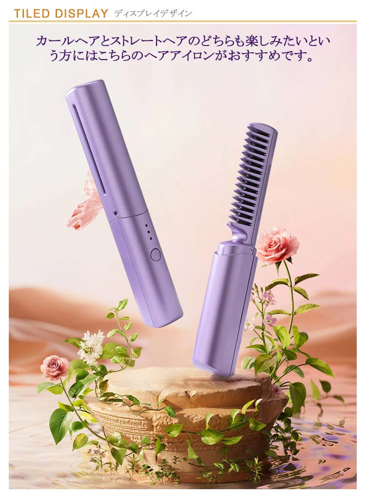 最新版!ヒートブラシ ヘアアイロン ミニ ヘアアイロン カール ストレート コードレス カール USB充電式 ミニ くし型 4000mAh大容量バッテリー 縮毛矯正 コーム ポータブル ヘアアイロンブラシ 両用可能 軽量 ストレートブラシ マイナスイオンヘアアイロン