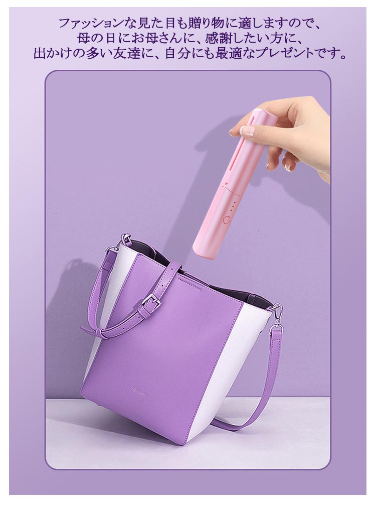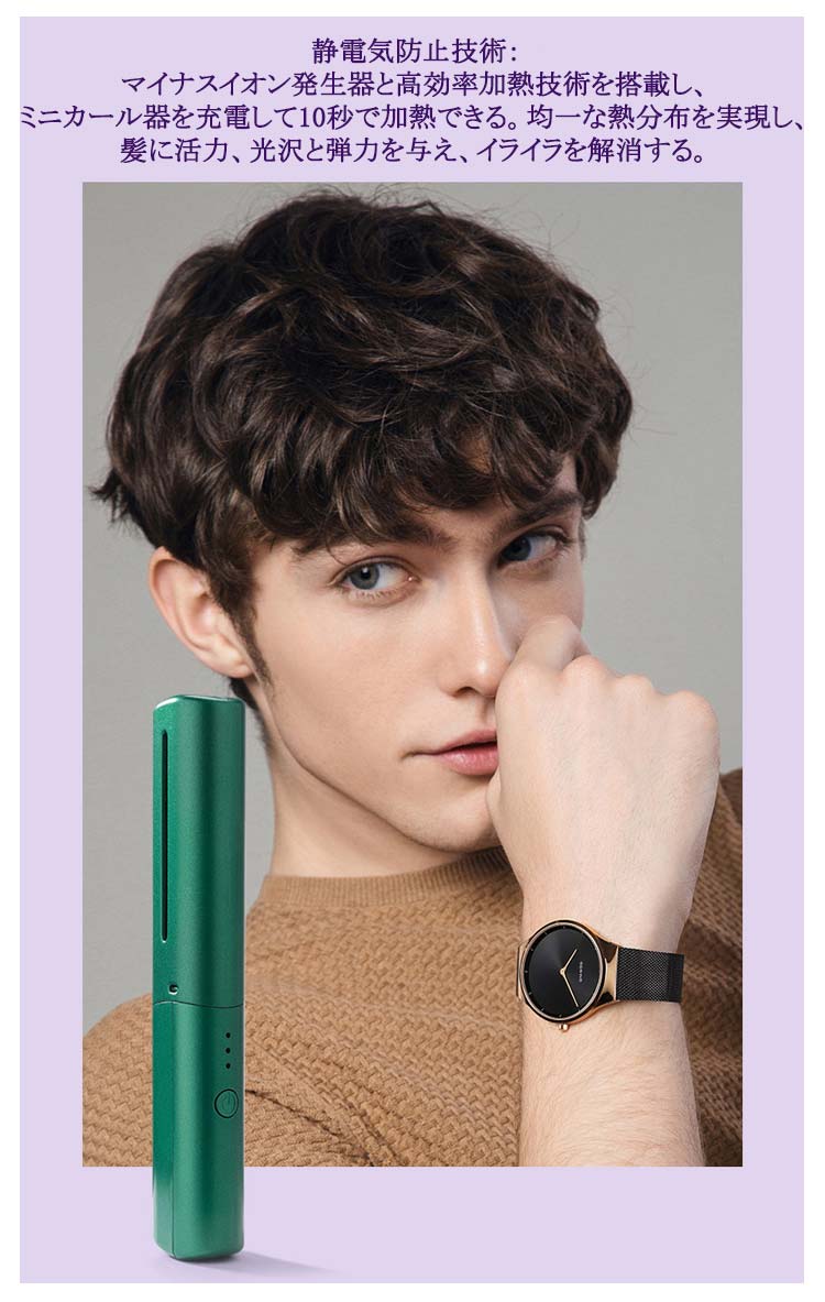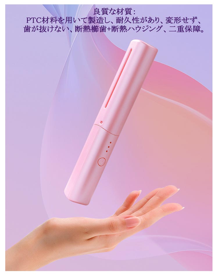 カール&ストレート両用/充電式/蓋付きカールヘアとストレートヘアのどちらも楽しみたいという方にはこちらのヘアアイロンがおすすめです。毛先をキャッチしやすいブラシ設計。絹のように美しく輝く髪を実現する、より繊細な頭皮をダメージから守る。特製ブラシによって頭皮の血行がよくなり、髪に輝き、柔らかさ、そして弾力性を与える効果があります。良質な材質:PTC材料を用いて製造し、耐久性があり、変形せず、歯が抜けない、断熱櫛歯+断熱ハウジング、二重保障。3段階の温度調節があり、リンスセラミックコーティングが含まれており、使用中に髪質を傷つけることはありません。櫛歯科学列はすべて均一に列を包み、特質コーティングを施し、髪を均一に熱を受けさせ、引っ張らずに髪を詰まらせない。静電気防止技術:マイナスイオン発生器と高効率加熱技術を搭載し、ミニカール器を充電して10秒で加熱できる。均一な熱分布を実現し、髪に活力、光沢と弾力を与え、イライラを解消する。大容量バッテリ4000mAh、約30分間の長時間航続時間。充電の不安を捨てる。日常のニーズに応える。すべての髪質に適しています:柔らかくて、まばらで、濃密で、縮れて、甚だしきに至ってはひげ!ストレートブラシで髪を梳くだけで、イライラやカールを減らすことができます。ファッションな見た目も贈り物に適しますので、母の日にお母さんに、感謝したい方に、出かけの多い友達に、自分にも最適なプレゼントです。