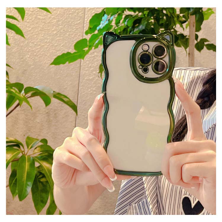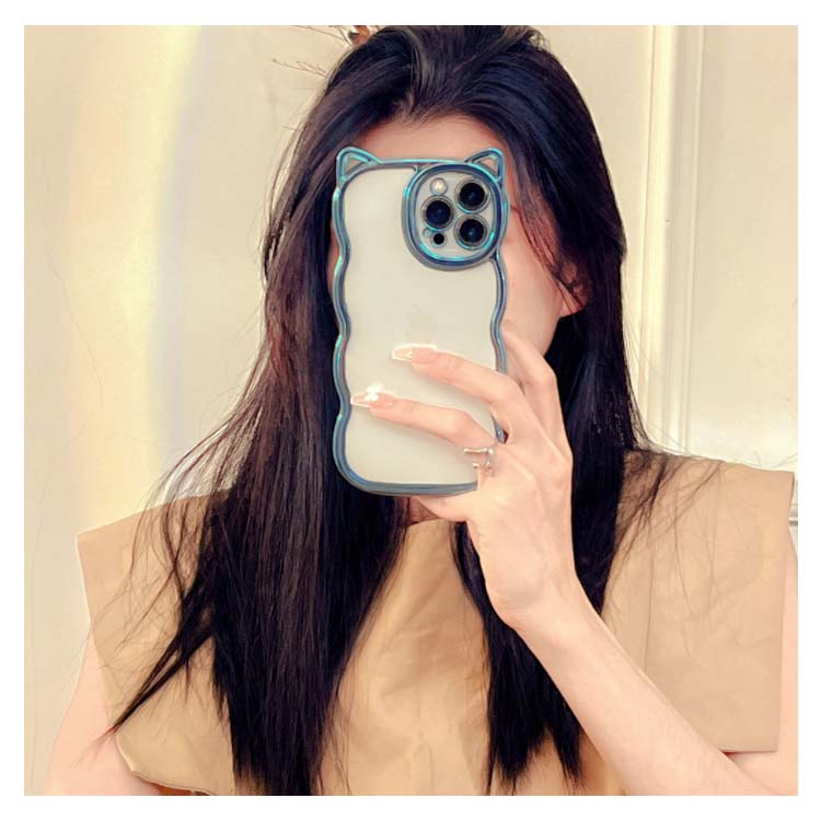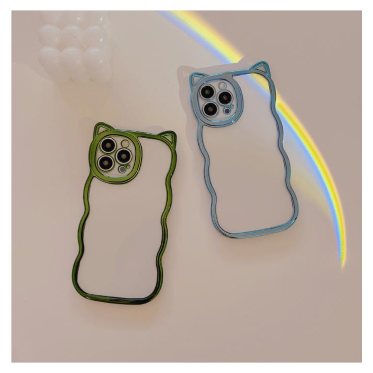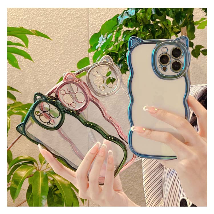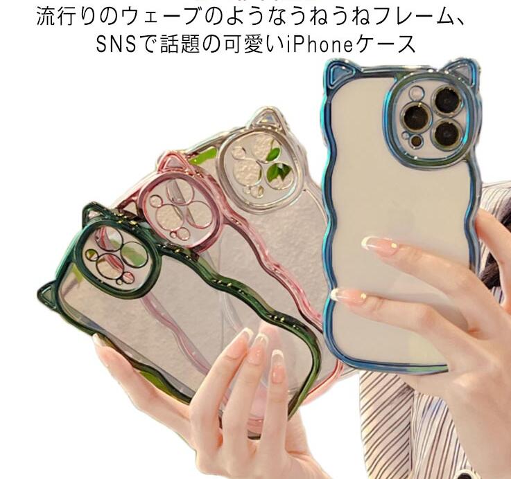 iPhoneケース うねうね なみなみ iphone14 iphone13pro max iphone12 猫耳 ケース メッキ シリコン 耐衝撃 かわいい スマホケース ウェーブ クリアケース クリア 透明 可愛い おしゃれ SNS 大人かわいい 女子 送料無料