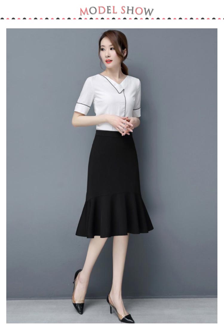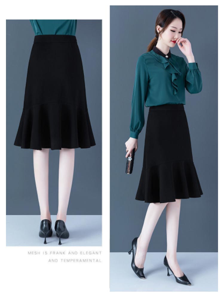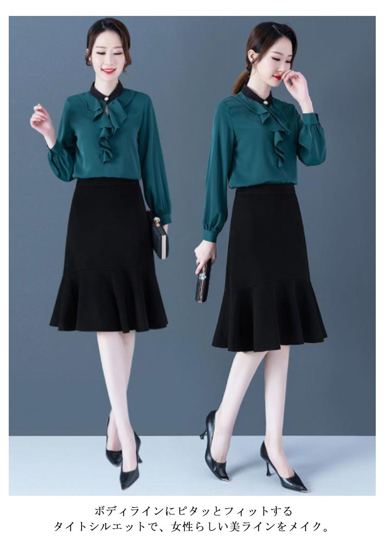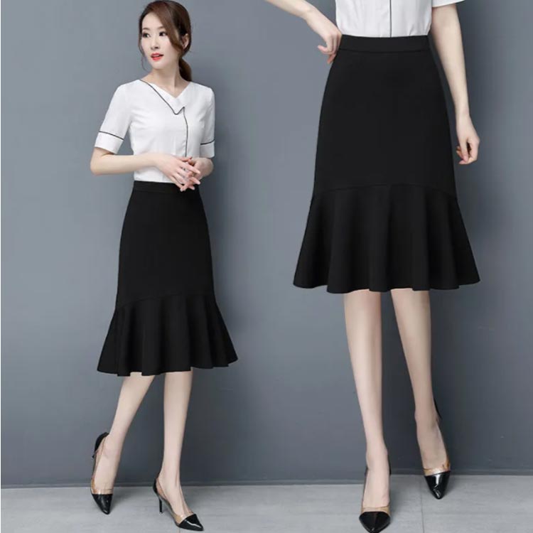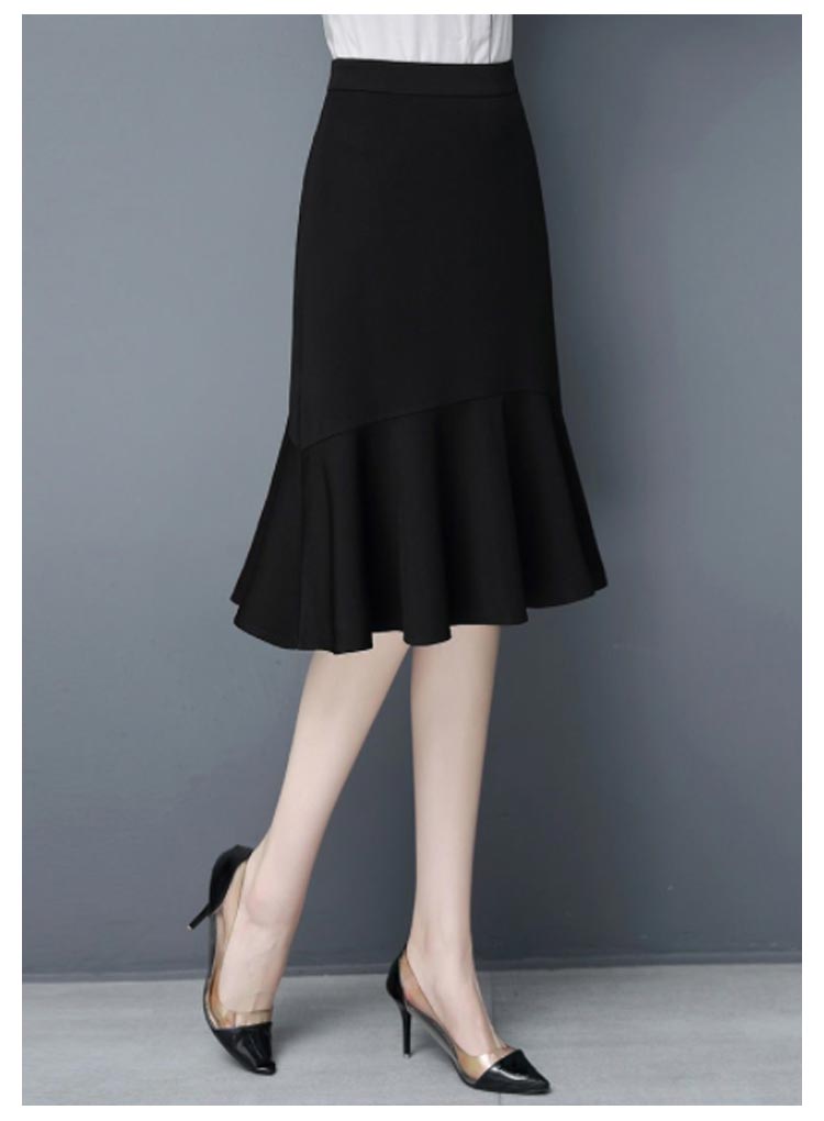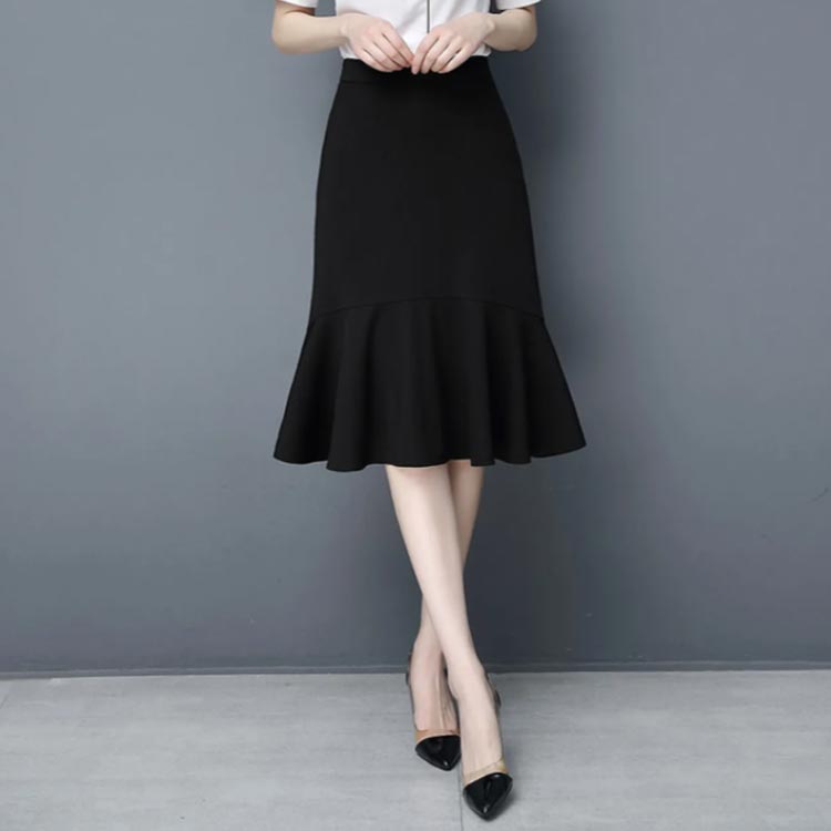 マーメイド スカート ブラック フリルスカート ハイウエスト 平ゴム 通勤 キレイめ 膝丈 送料無料