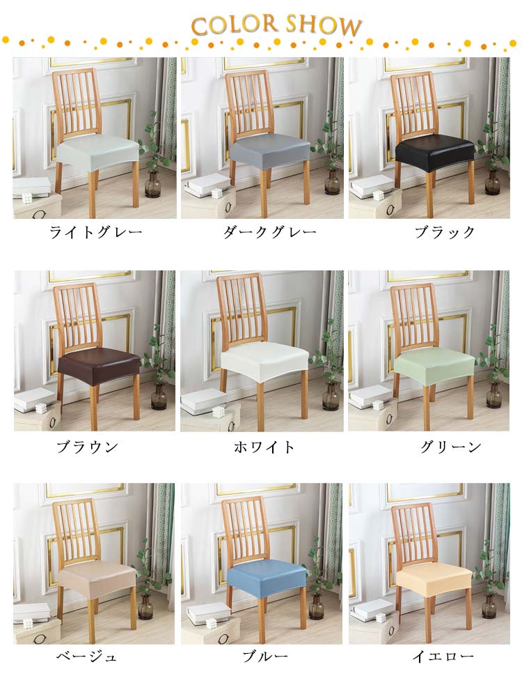 | さっと被るだけでチェアのイメージをガラっと変えます? PUレザーの素材を採用し、高弾性で耐久性があり、ずれにくく、取り付けも簡単。 高級感があるし、家庭?ホテルでご利用はもちろん、ウェデイング?パーティーでもご使用頂けます。 シワになりにくいし、肌触り心地も気持ちいいし、おしゃれで快適。 高価の革製チェアを買い換えるではなく、座面カバーだけで手軽に部屋の雰囲気をガラッと変えられます。 | |