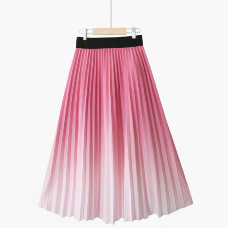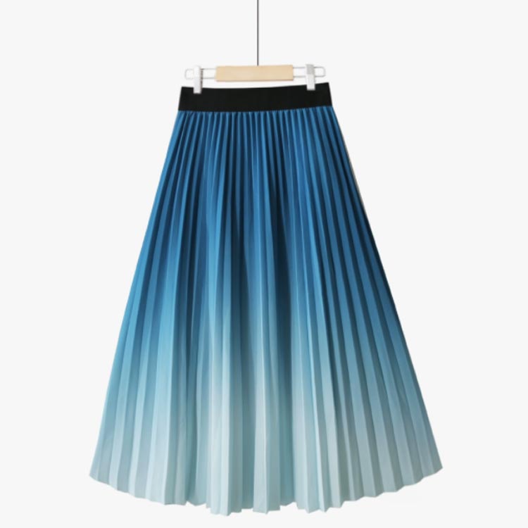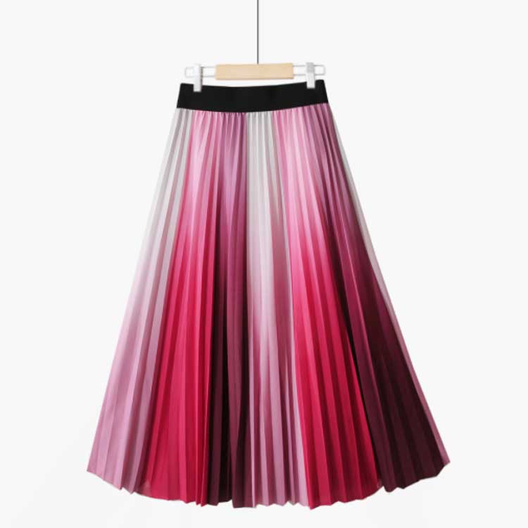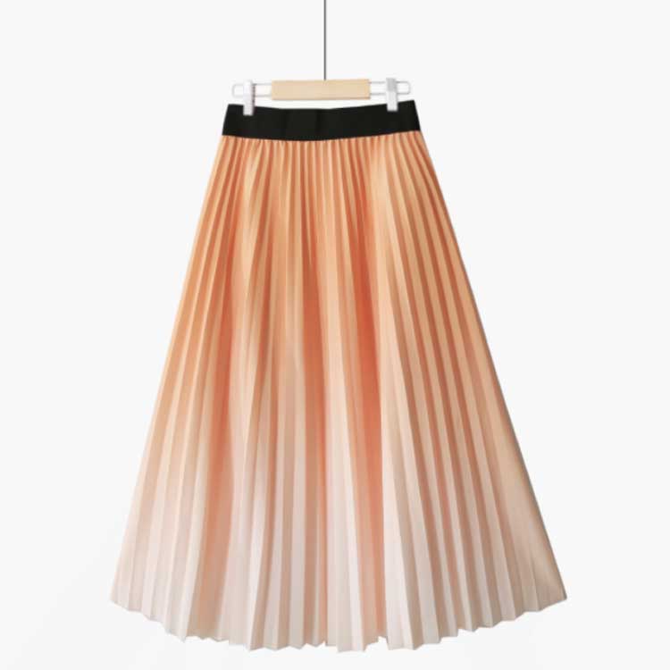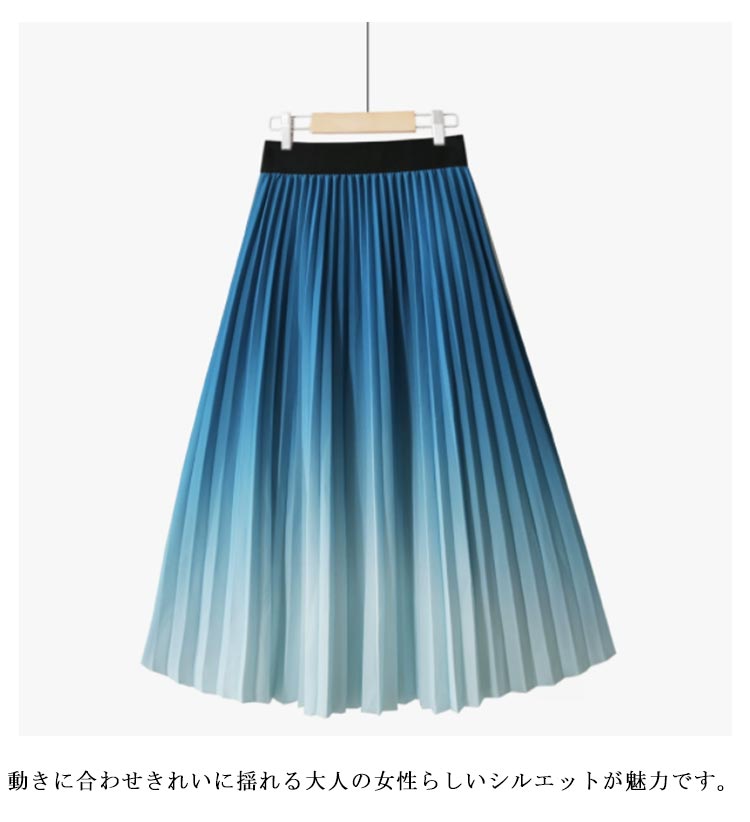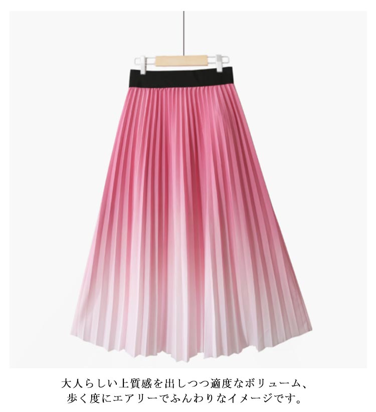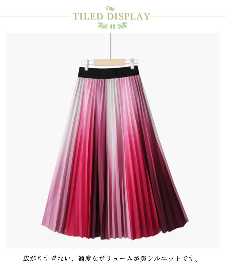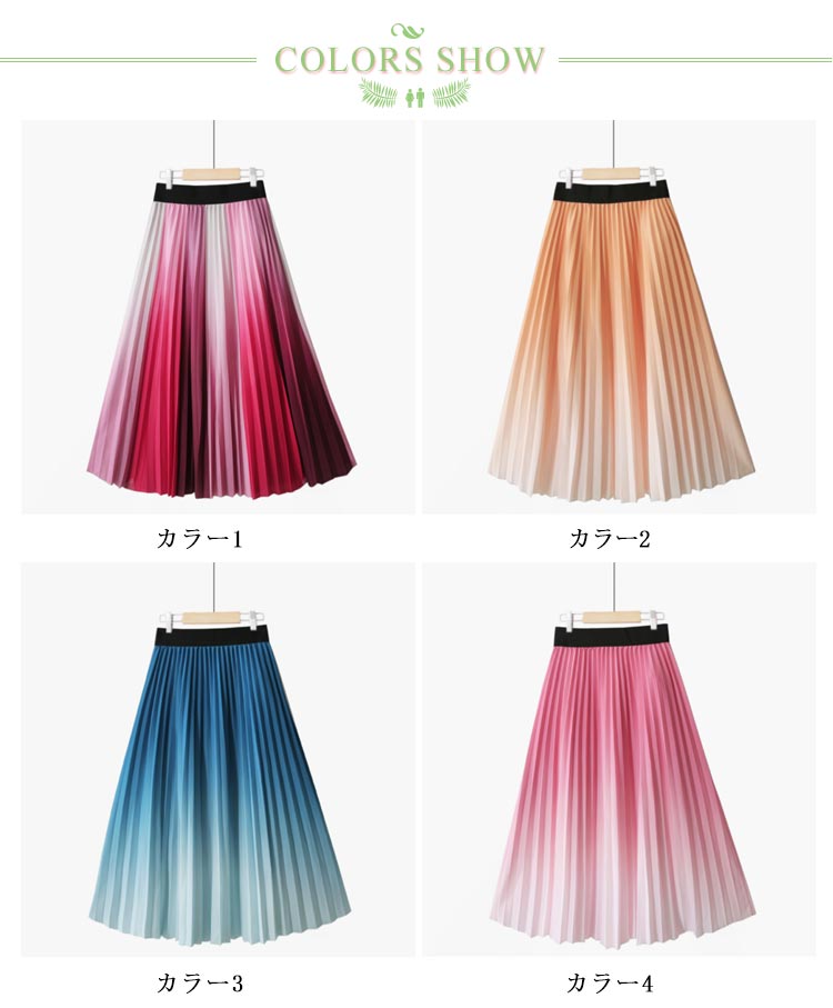 プリーツスカート グラデーション ロングスカート プリーツ フレアスカート ボトムス グラデーションスカート ウエストゴム プリーツ Aライン 体型カバー フレア ふんわり ボヘミアン 光沢 送料無料 ピンク ブルー オレンジ