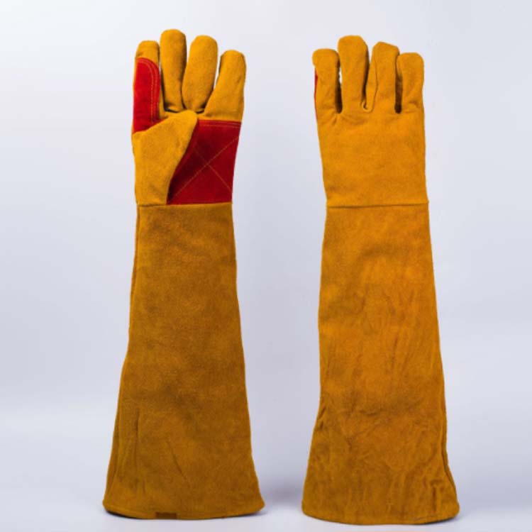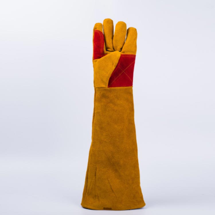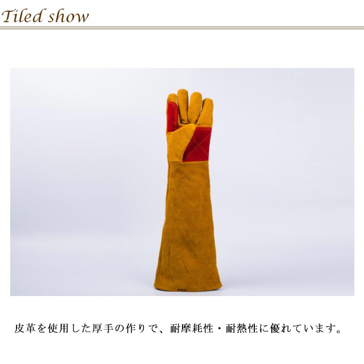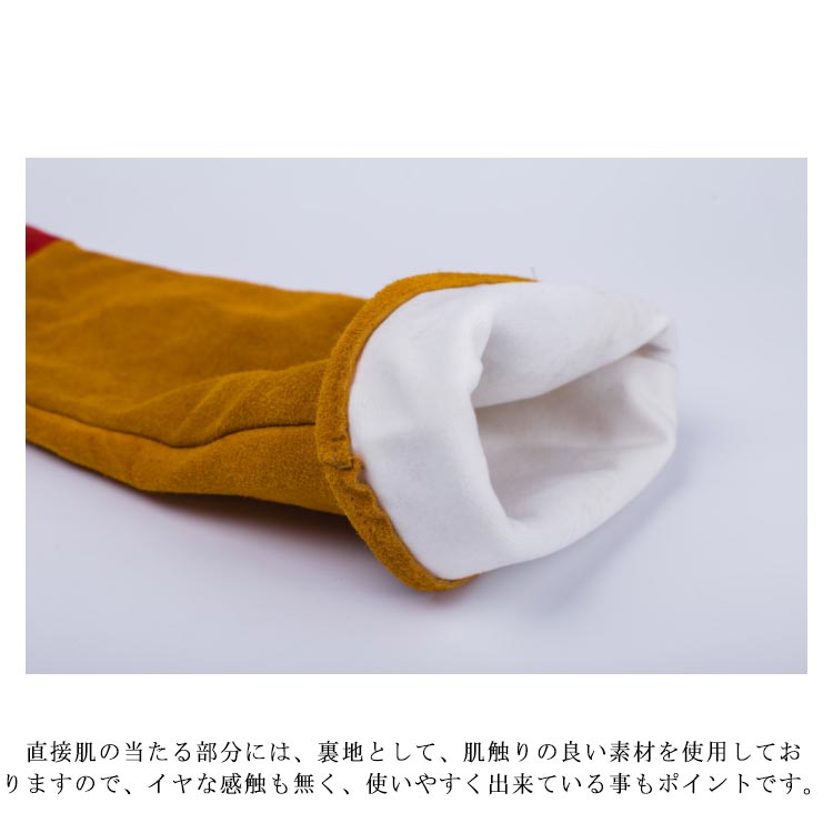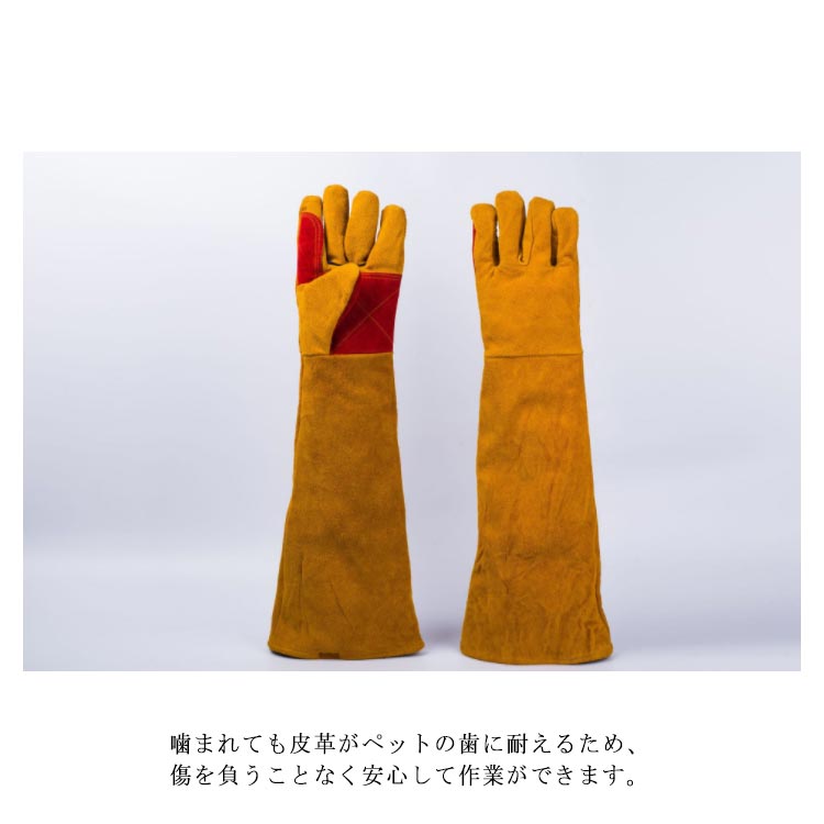 | 直接肌の当たる部分には、裏地として、肌触りの良い素材を使用しておりますので、イヤな感触も無く、使いやすく出来ている事もポイントです。 犬や猫、爬虫類などのペットを扱う際に噛みつきや引っかきから手を守るための手袋です。 皮革を使用した厚手の作りで、耐摩耗性?耐熱性に優れています。 噛まれても皮革がペットの歯に耐えるため、傷を負うことなく安心して作業ができます。 また、耐熱性に優れているため、キャンプやBBQなどのアウトドアシーンでも活躍します。 ゆったりとしたサイズ感で、男女問わずお使いいただけます。 | |