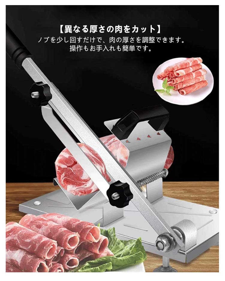 ミートスライサー 手動式 家庭用 しゃぶしゃぶ 業務用 肉スライサー 厚さ調節可能 生ハムスライサー 肉切り機 冷凍肉スライサー 薄切り 家庭用 業務用 野菜 送料無料